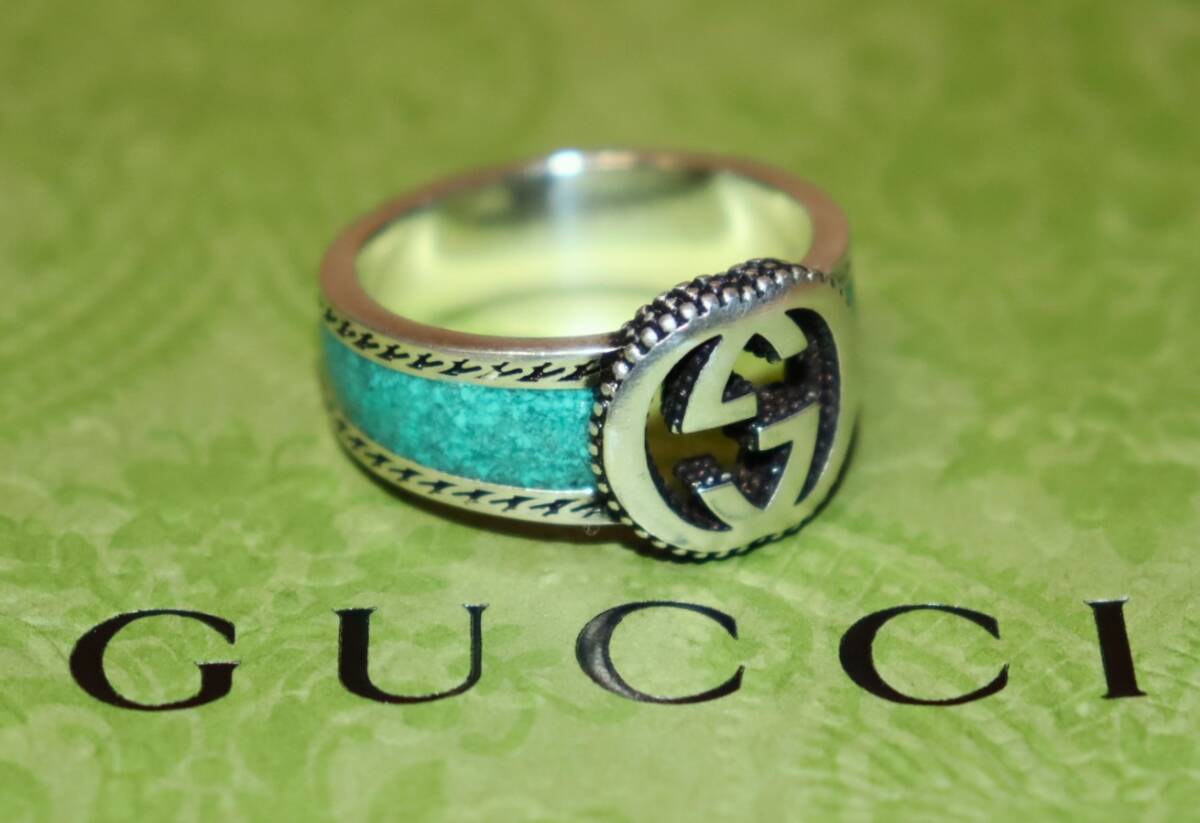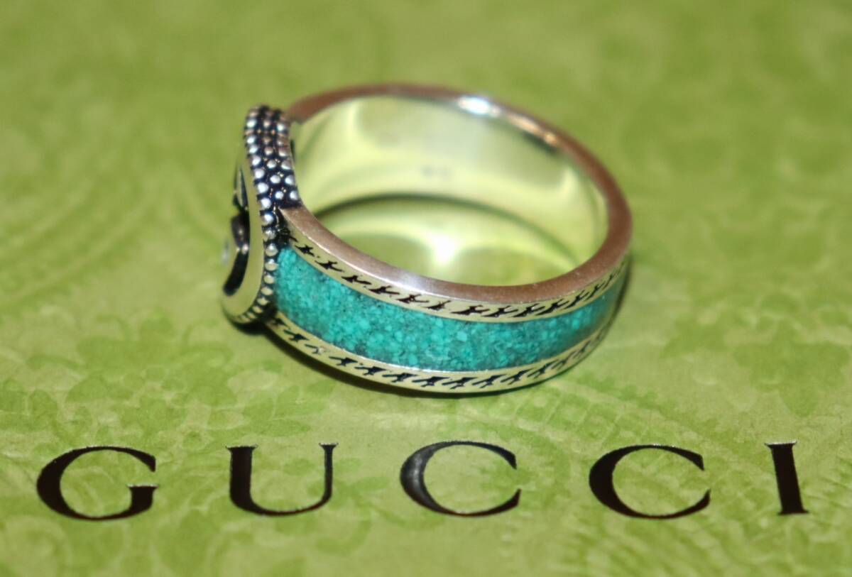 GUCCI「 インターロッキングG リング ターコイズ エナメル 」です。
