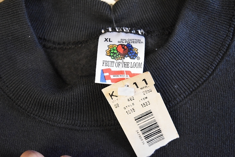 グッドプリント◎デッドストック90sビンテージUSA製アメリカ製FRUITOFTHELOOMフルーツオブザルームボディプリントスウェットXLブラックt480