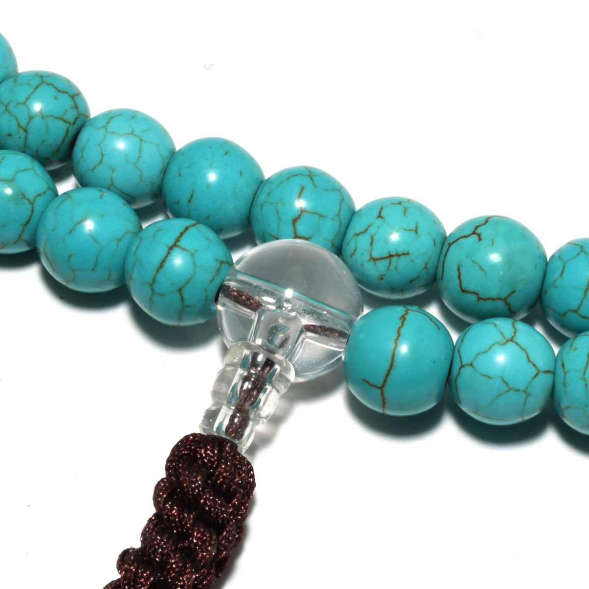 | 商品説明 | 主玉(ハウライトターコイズ) 約 8mm 天玉(水晶) 約 6mm 親玉(水晶) 約 10mm 輪の引き伸ばしサイズ 約 41cm |