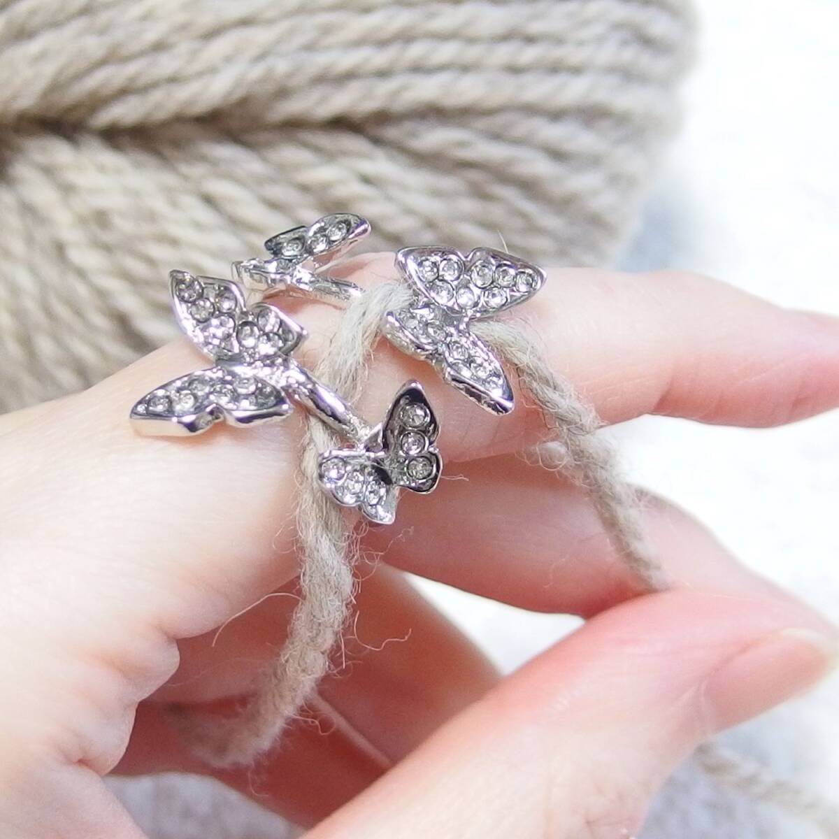 【匿名発送】編み物 ヤーンガイド 蝶々 バタフライ シルバー◆指輪 手編みリング 編物指貫 手芸 裁縫道具