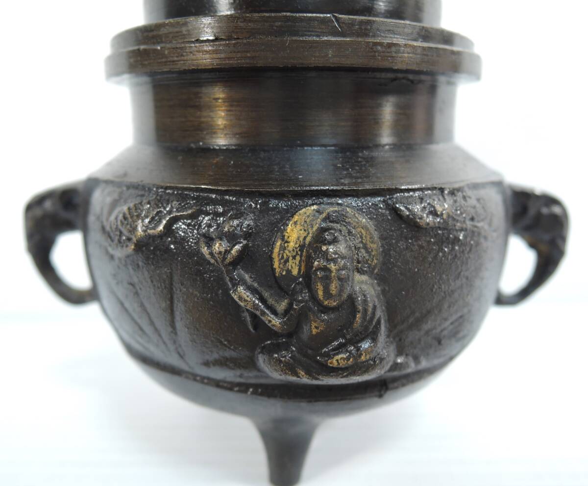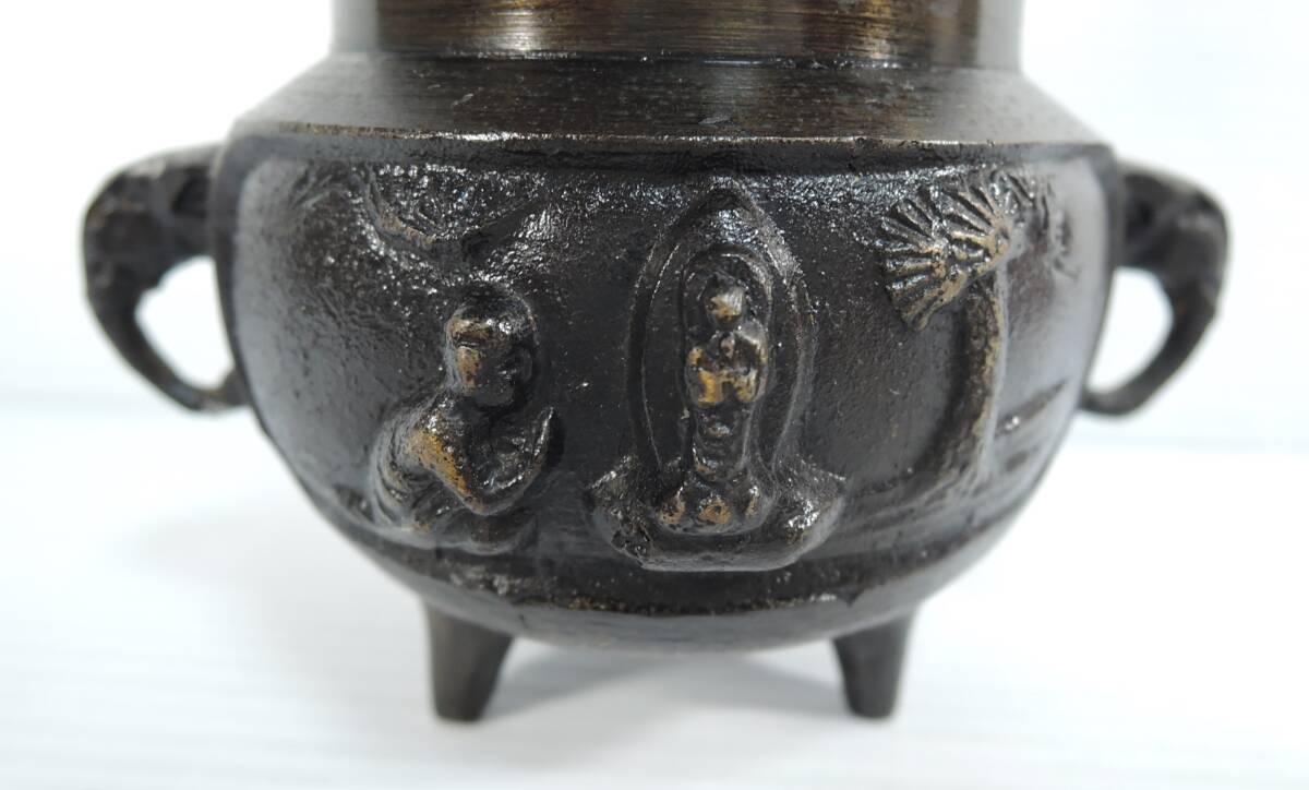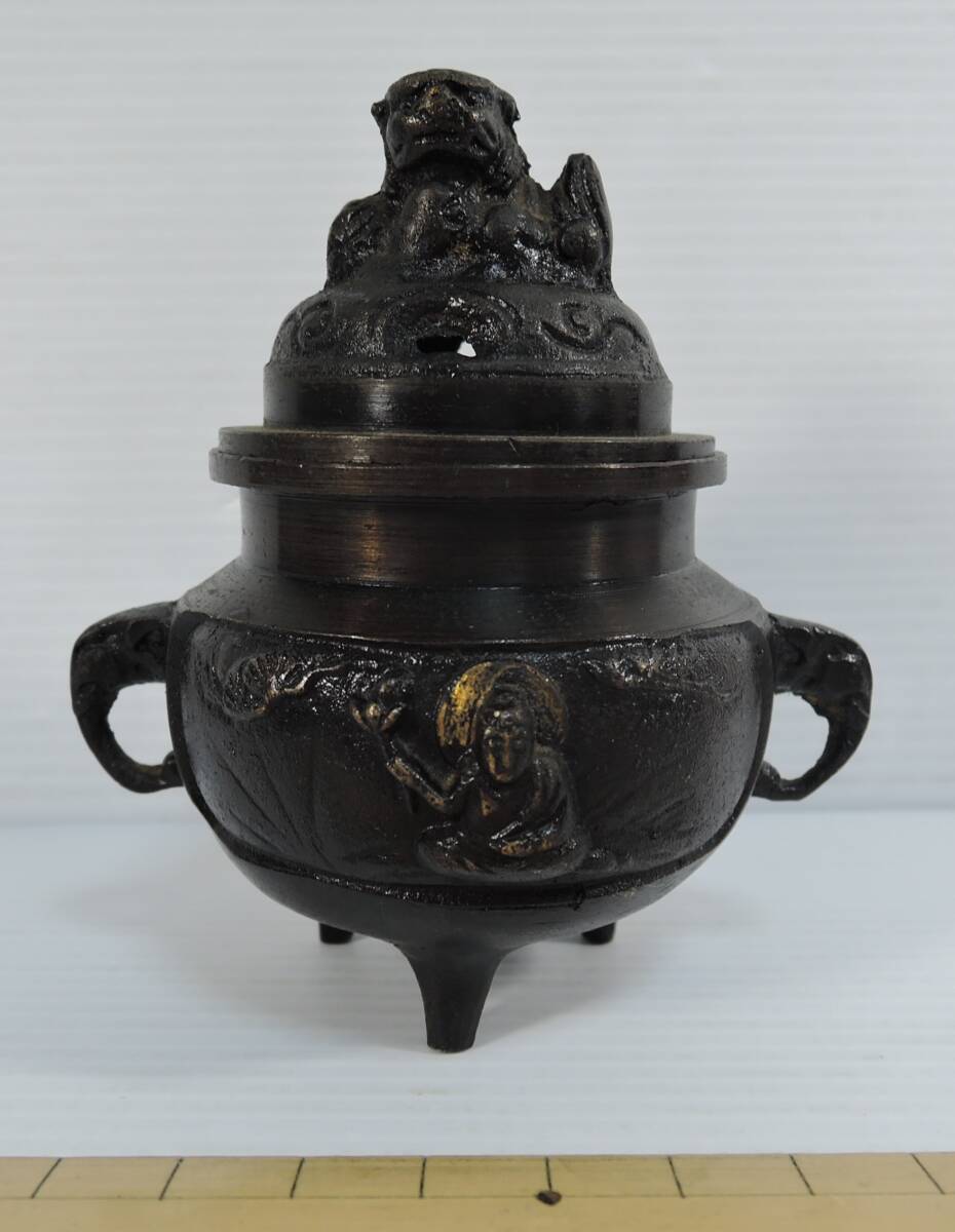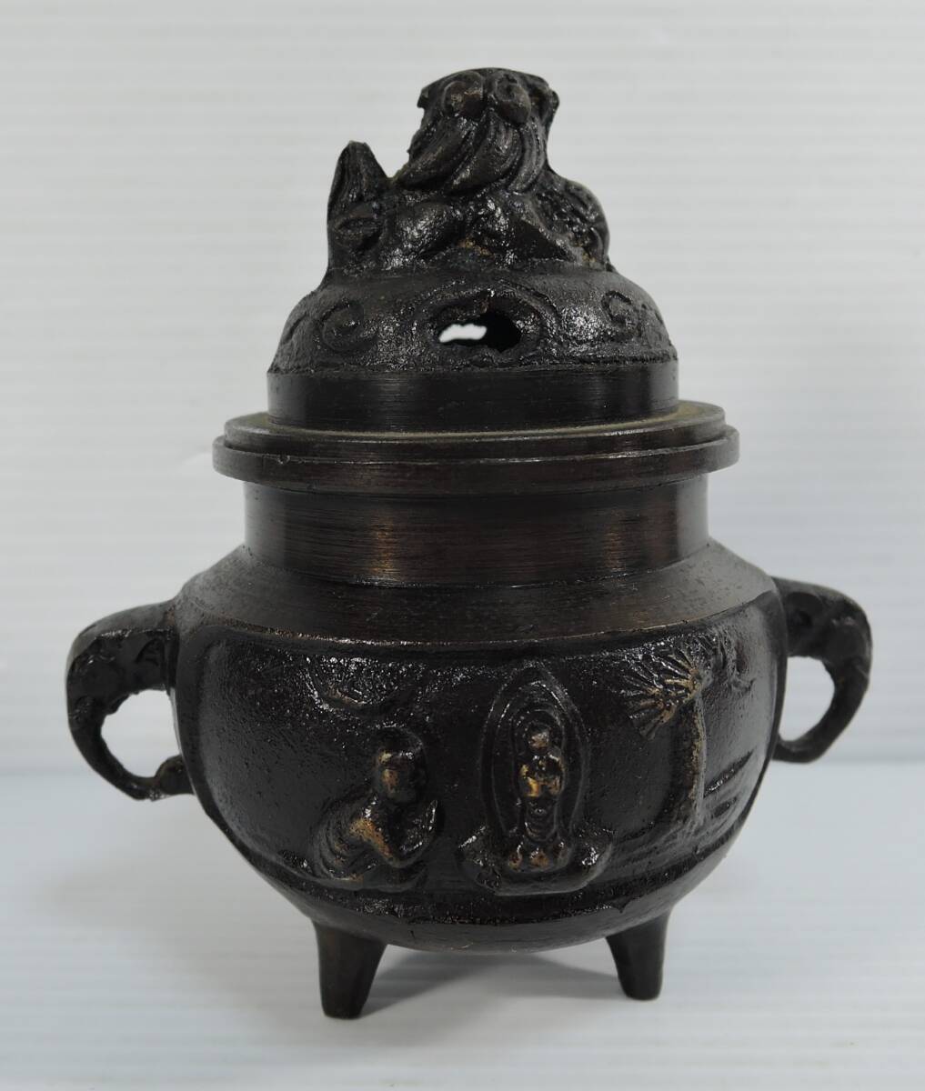 ☆11K■真鍮製 香炉■ゾウ・獅子・釈迦 高さ98mm 重さ306g