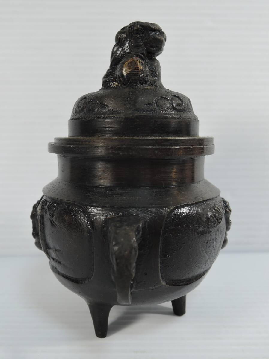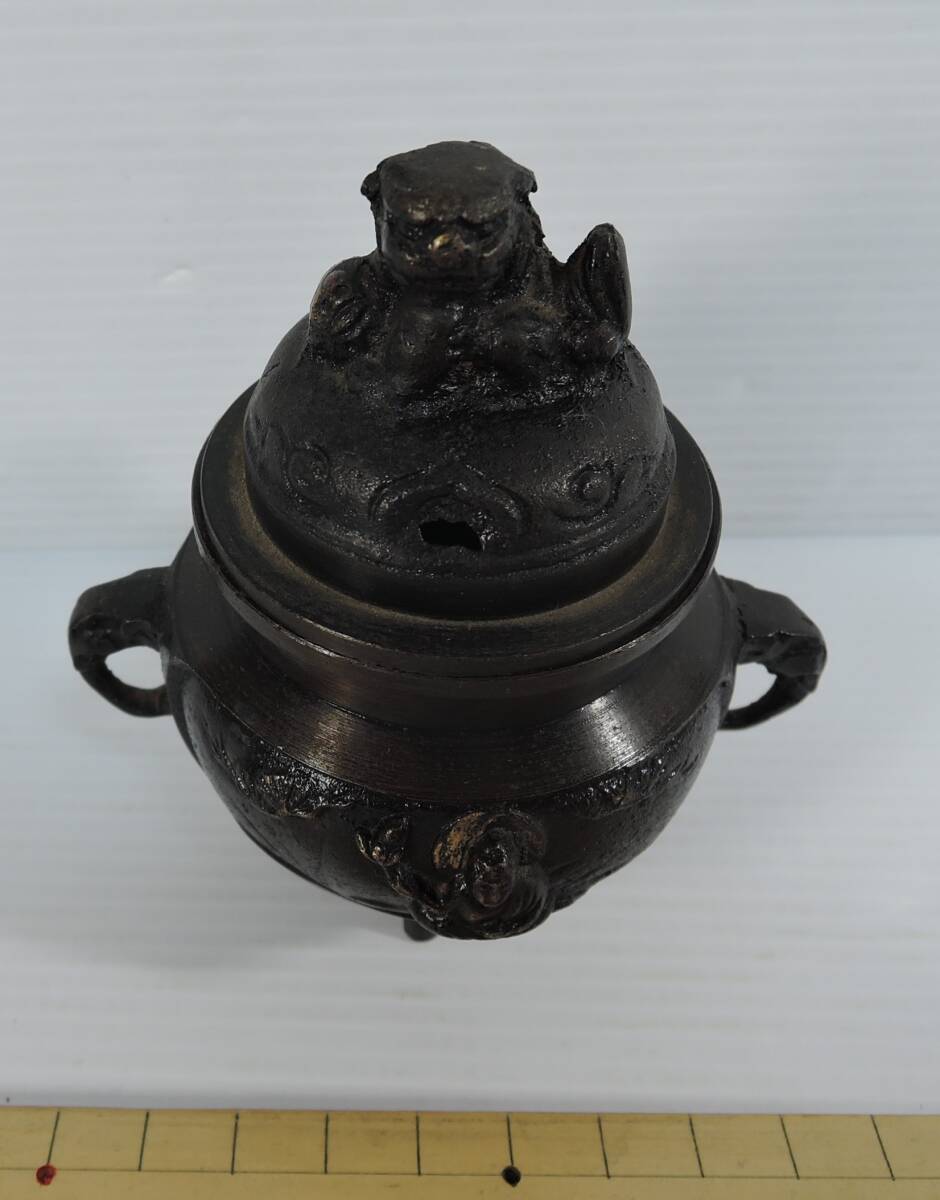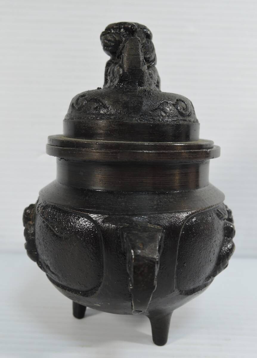 ☆11K■真鍮製 香炉■ゾウ・獅子・釈迦 高さ98mm 重さ306g
