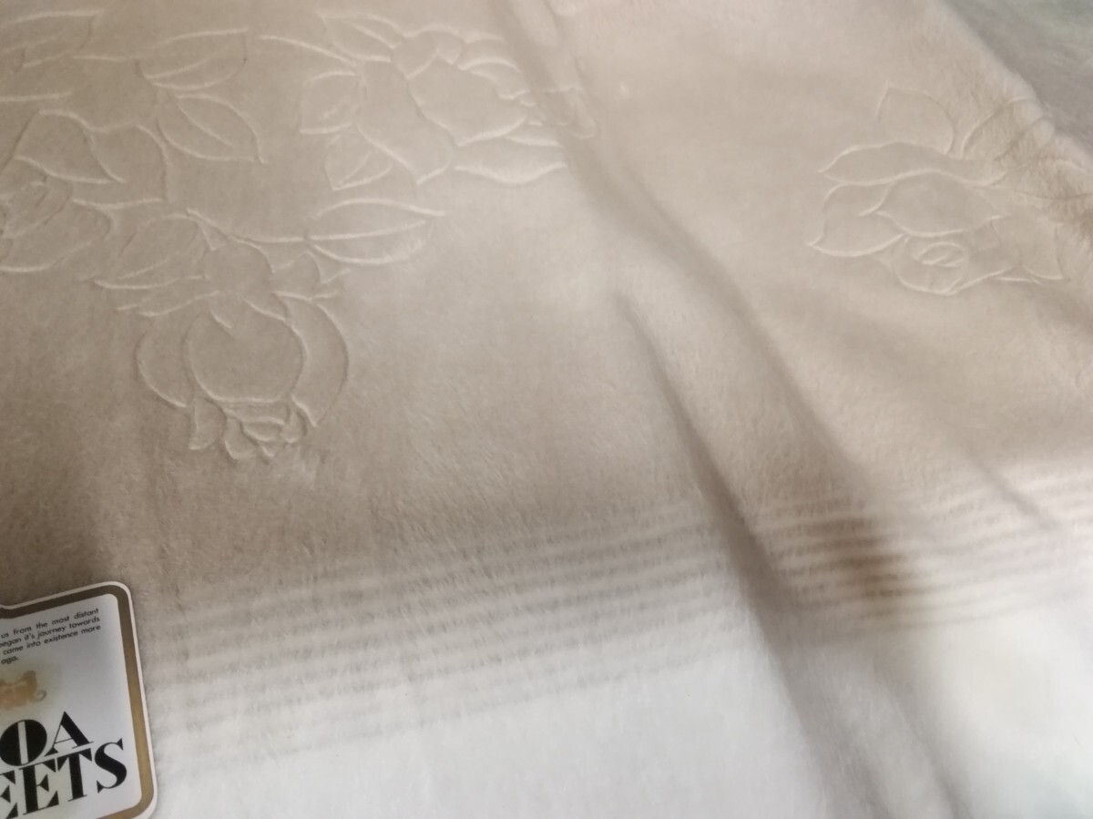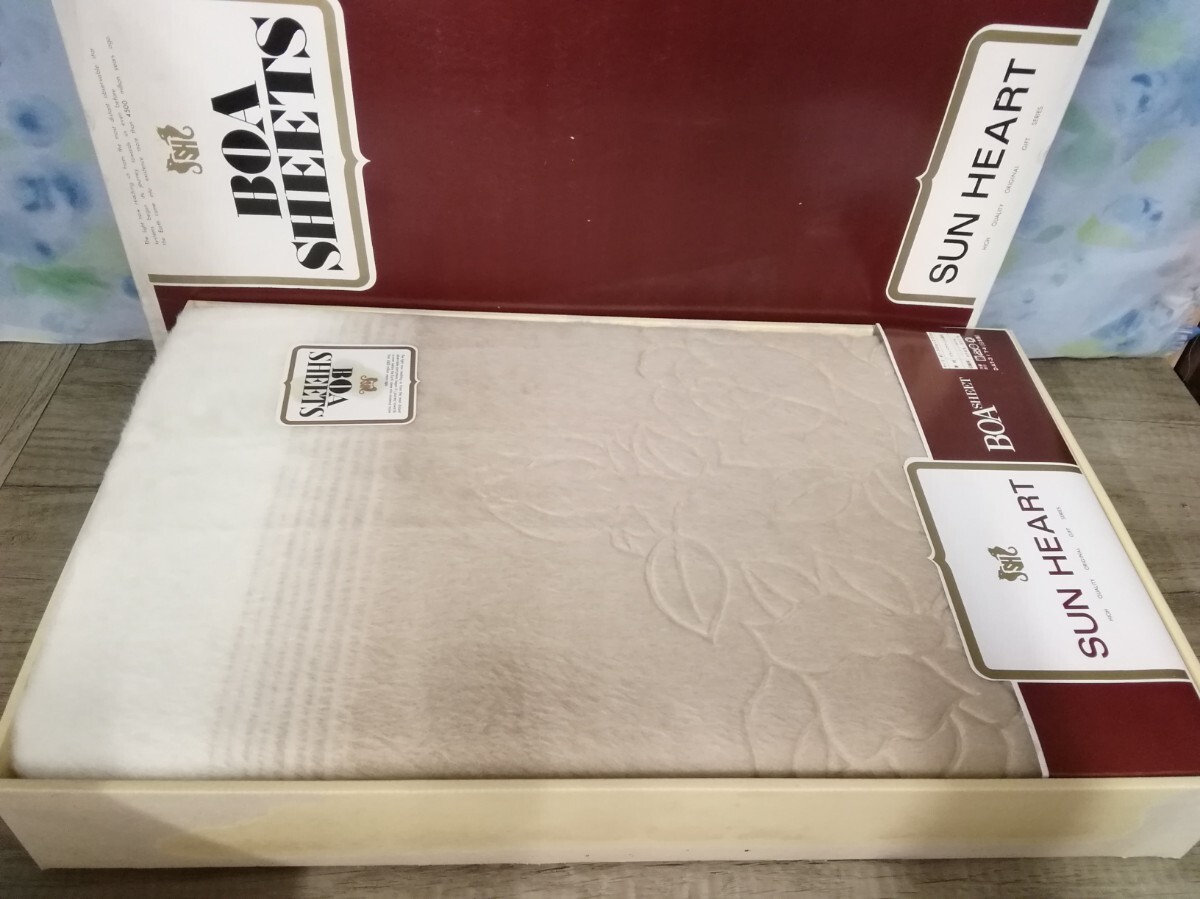 SUN HEART ボアシーツ サイズ 130cm×230cm グランドアクリル100% 日本製 ベージュ系 寝具 【未使用長期保管品】※箱に汚れあり