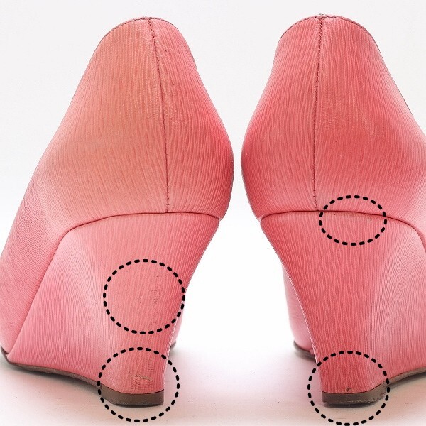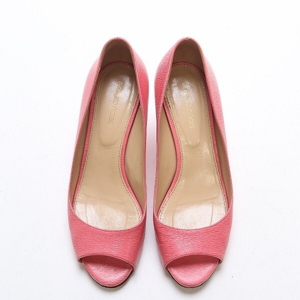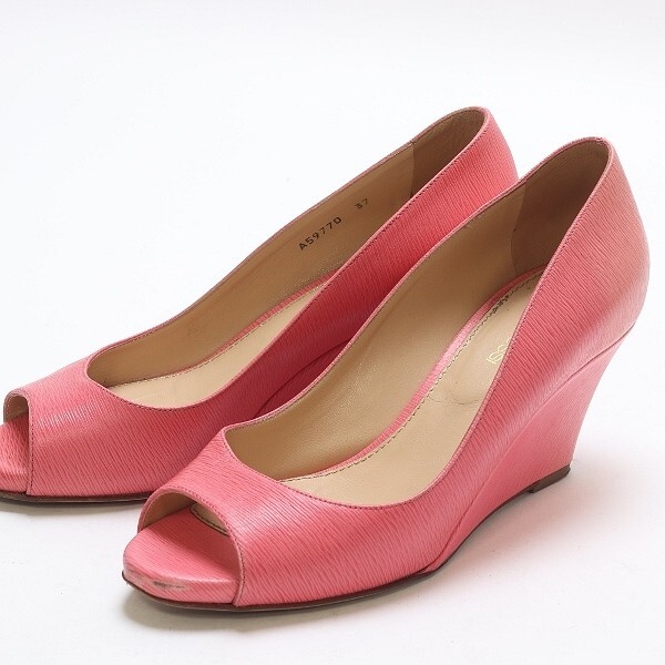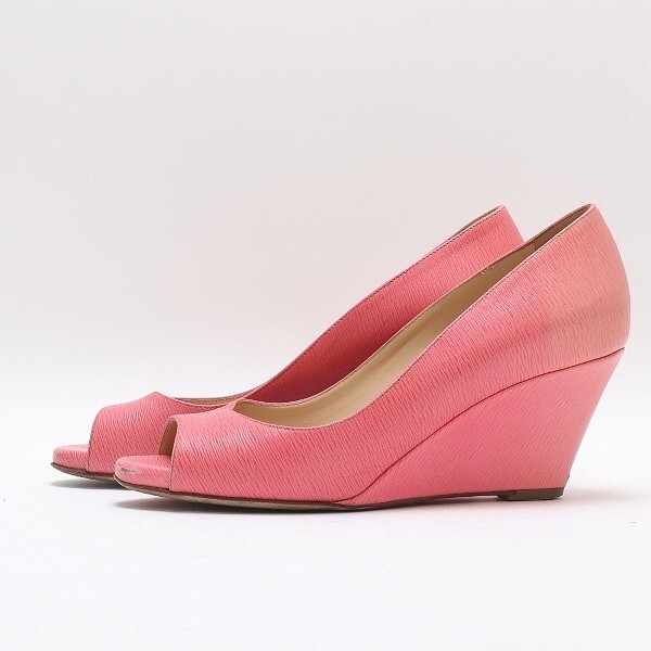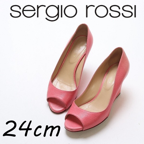 ◆sergio rossi セルジオロッシ 型押しレザー オープントゥ ウェッジソール パンプス ピンク 37 | |
