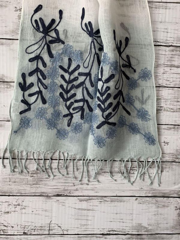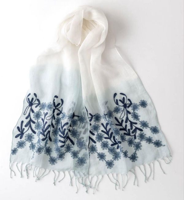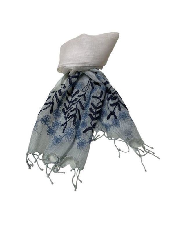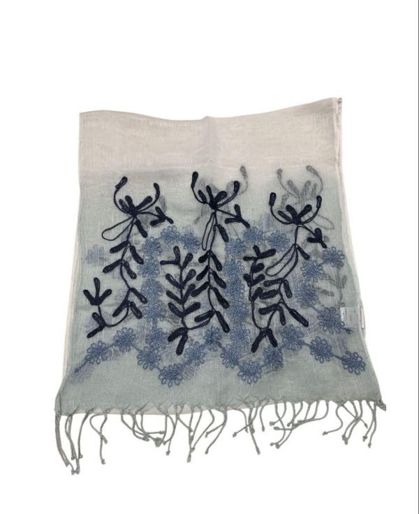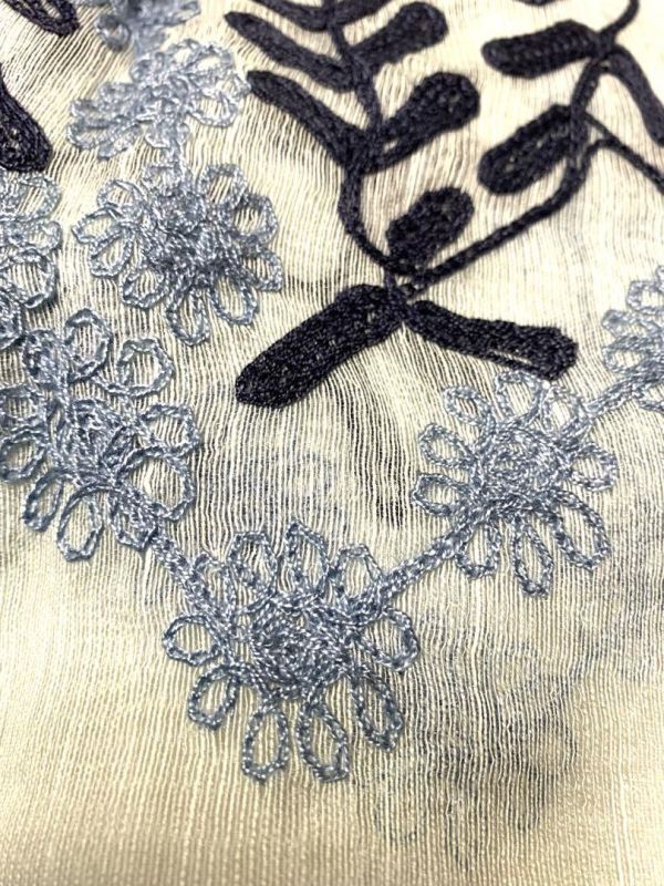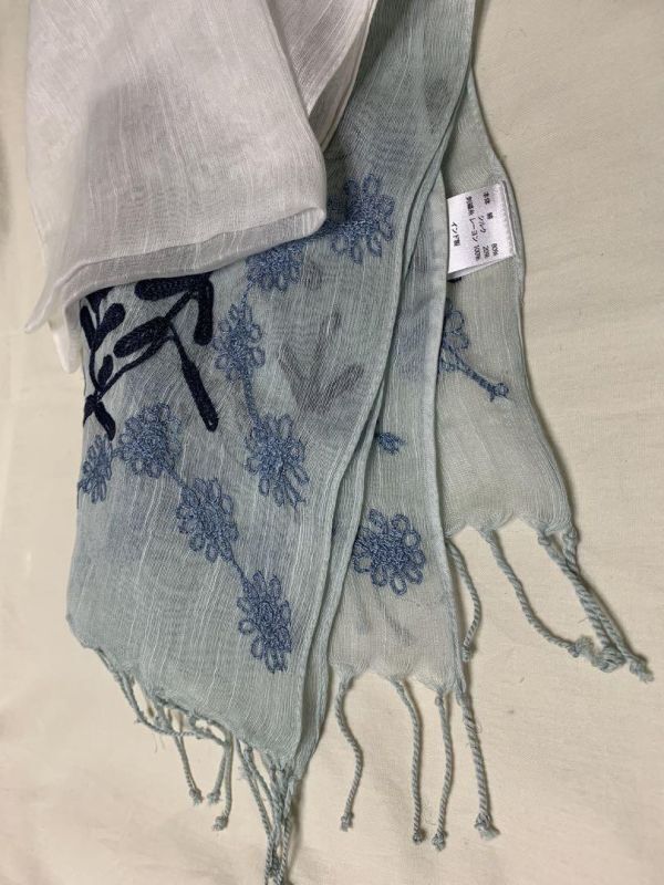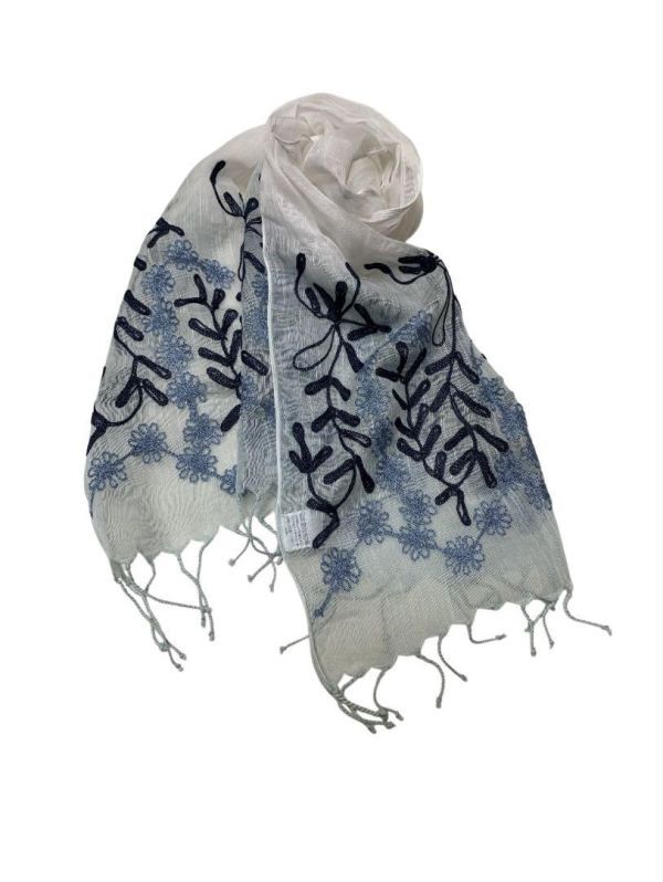 ★ インドシルクコットンアリ刺繍薄手ストール 春夏用 1390 ブルー系⑦ ★ | ||