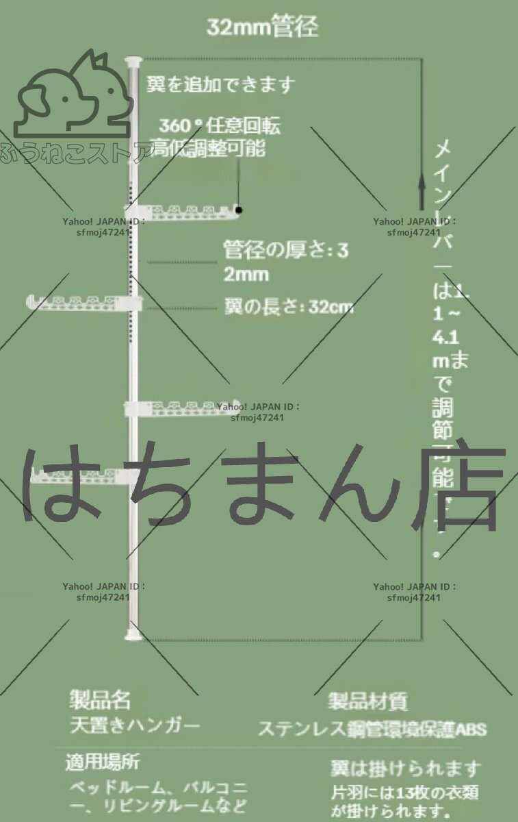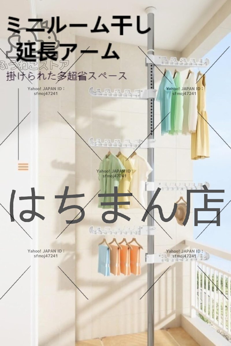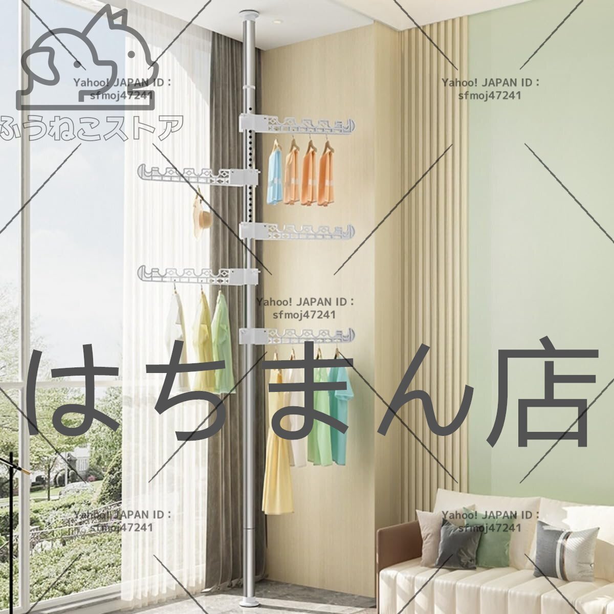ハンガーラック つっぱりポールハンガー ポールハンガー コートハンガー 収納 高さ110-410cm 物干し竿です (銀です 5翼です)