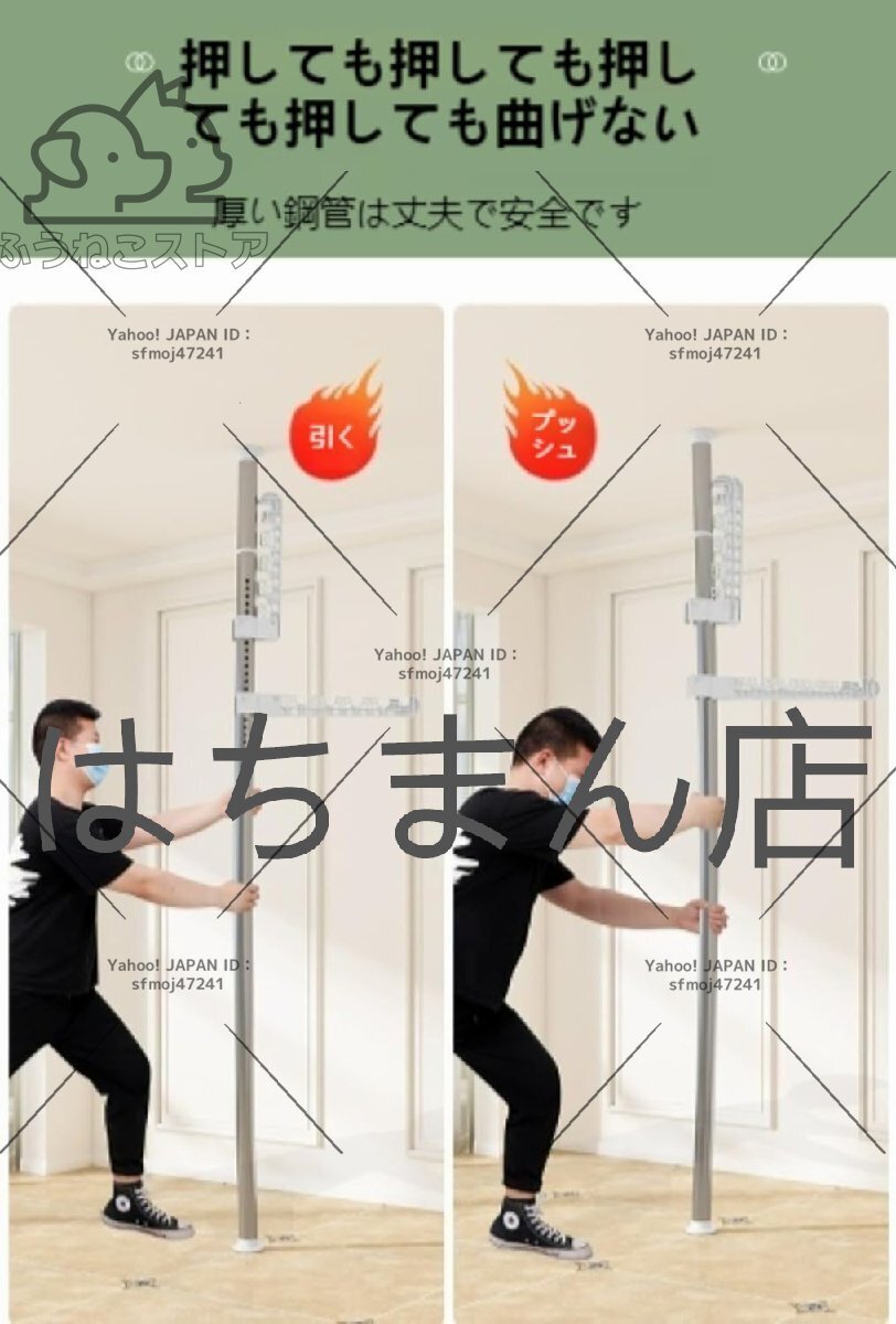 ■「部屋干しにも最適、限られたスペースを有効活用!」上下伸縮バネ式で奥様でもカンタン固定。スプリング圧縮方式 スプリング圧縮方式なのでワンタッチで取り付け、取り外しが簡単! 直径32mmの極太パイプで安定感も抜群です。