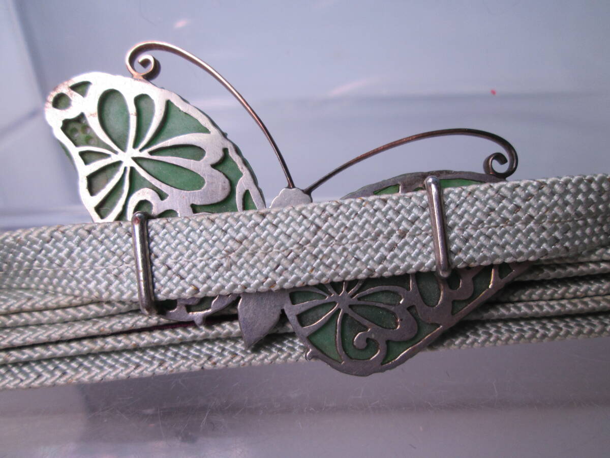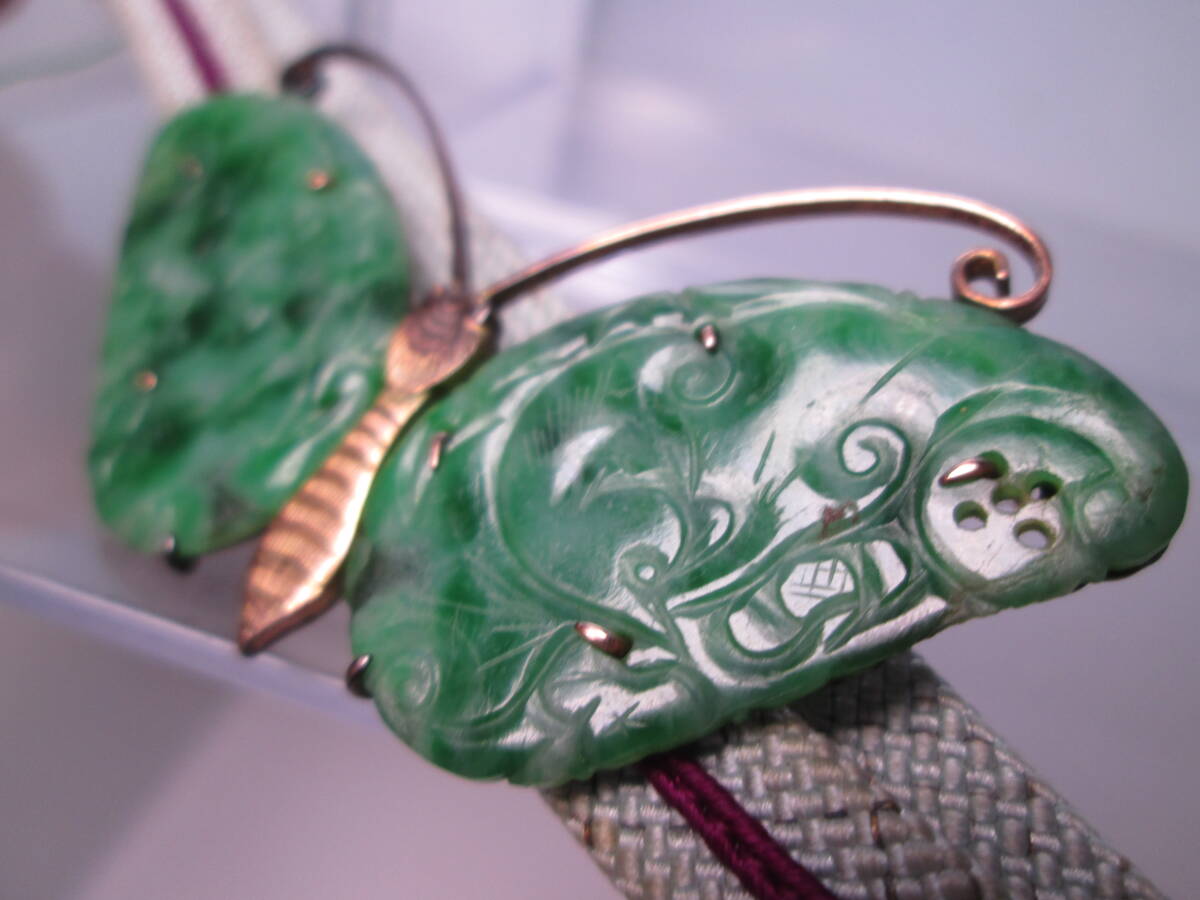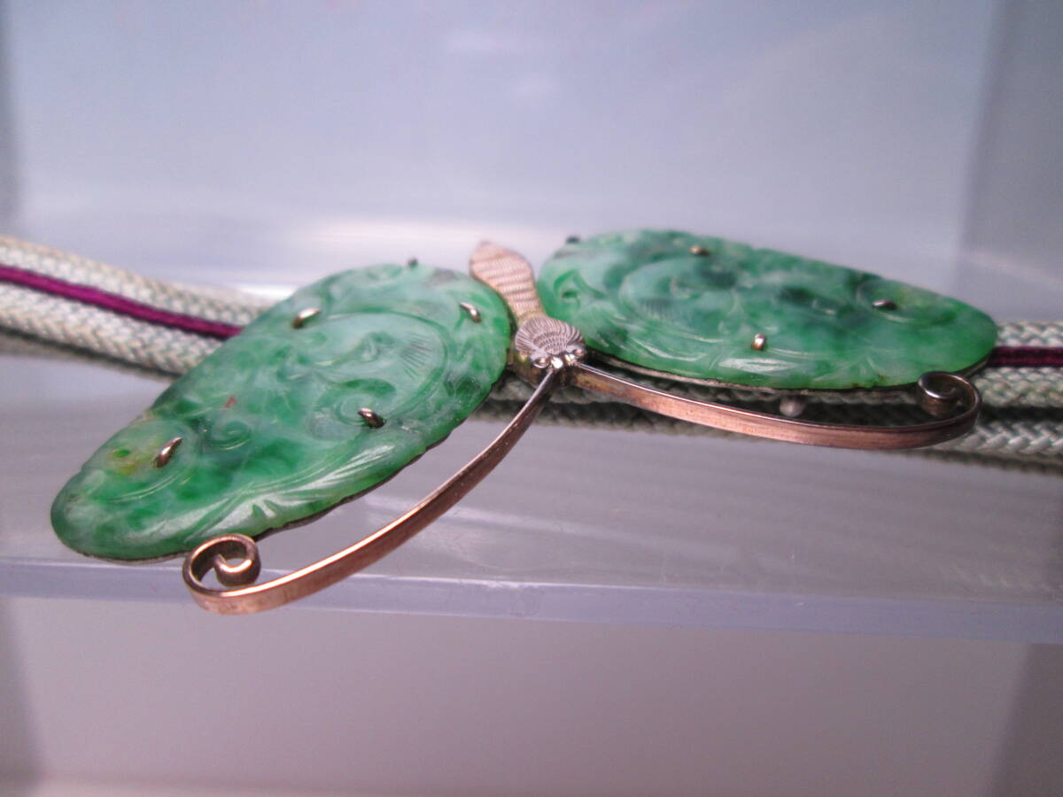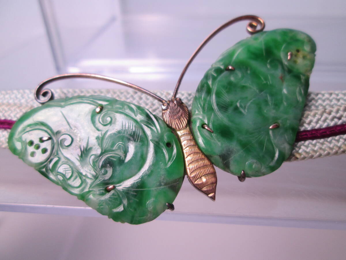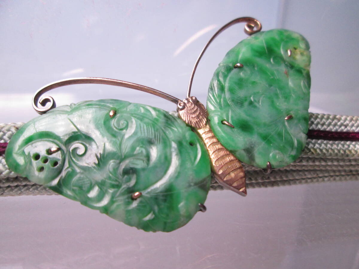 【江月】アンティーク・本翡翠 美しい蝶の帯留め 共ケース付