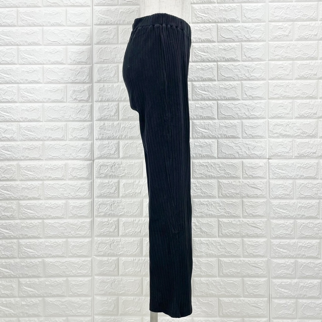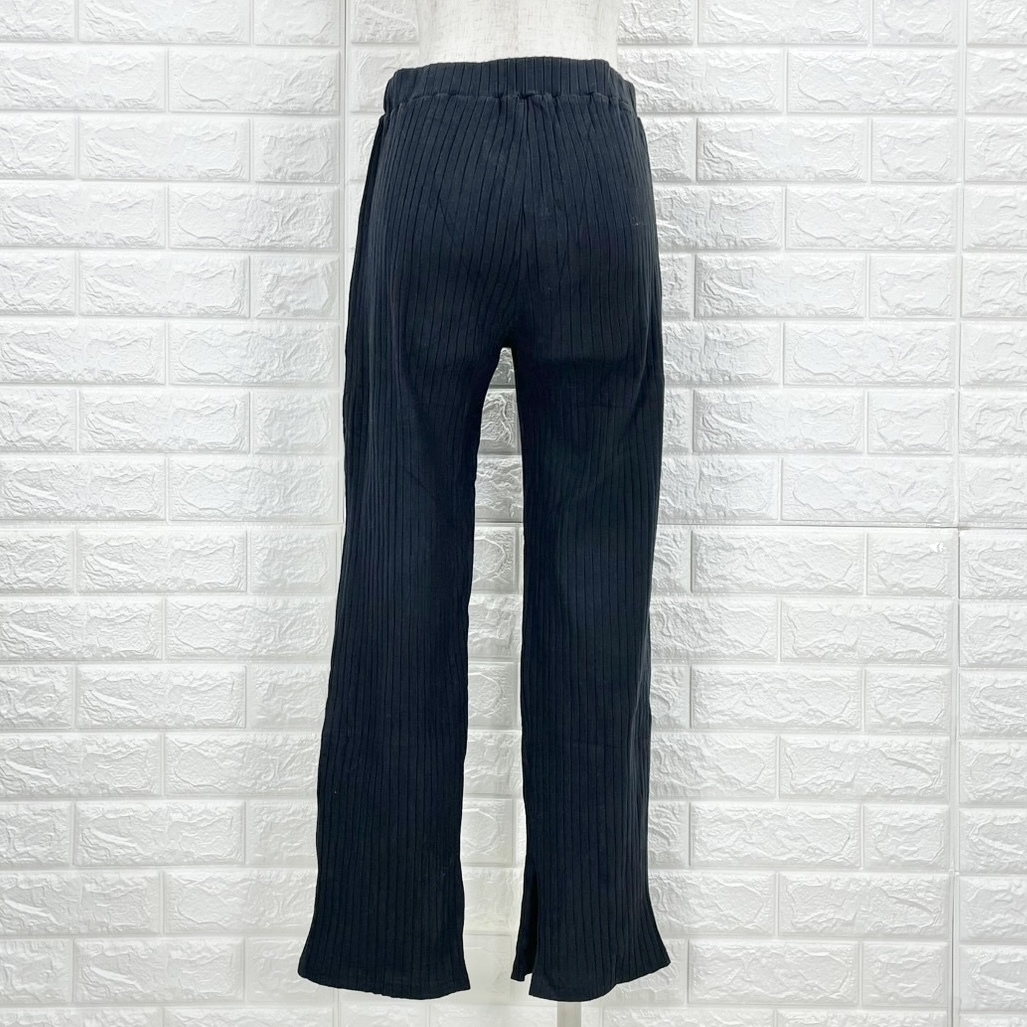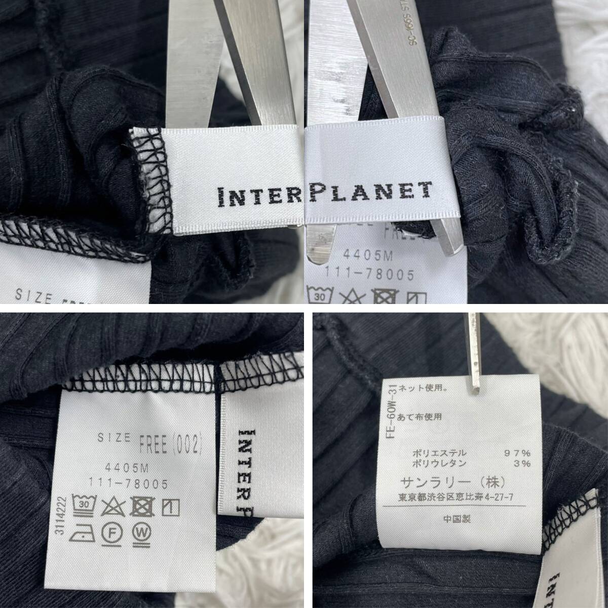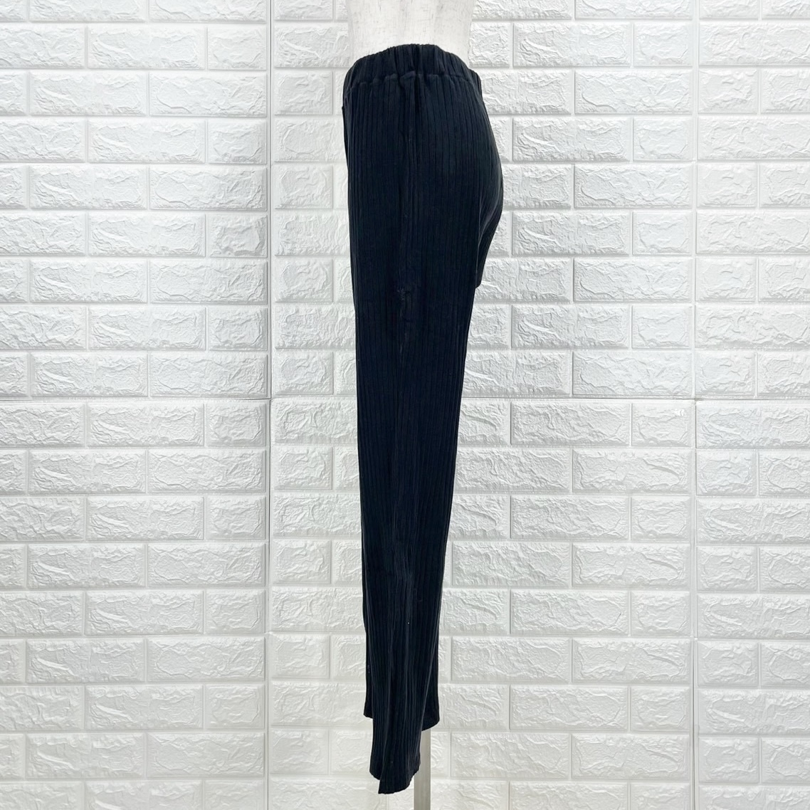 【A3492】INTERPLANET インタープラネット リブストレートパンツ レディース ブラック 美脚 カジュアル ウエストゴム フリーサイズ