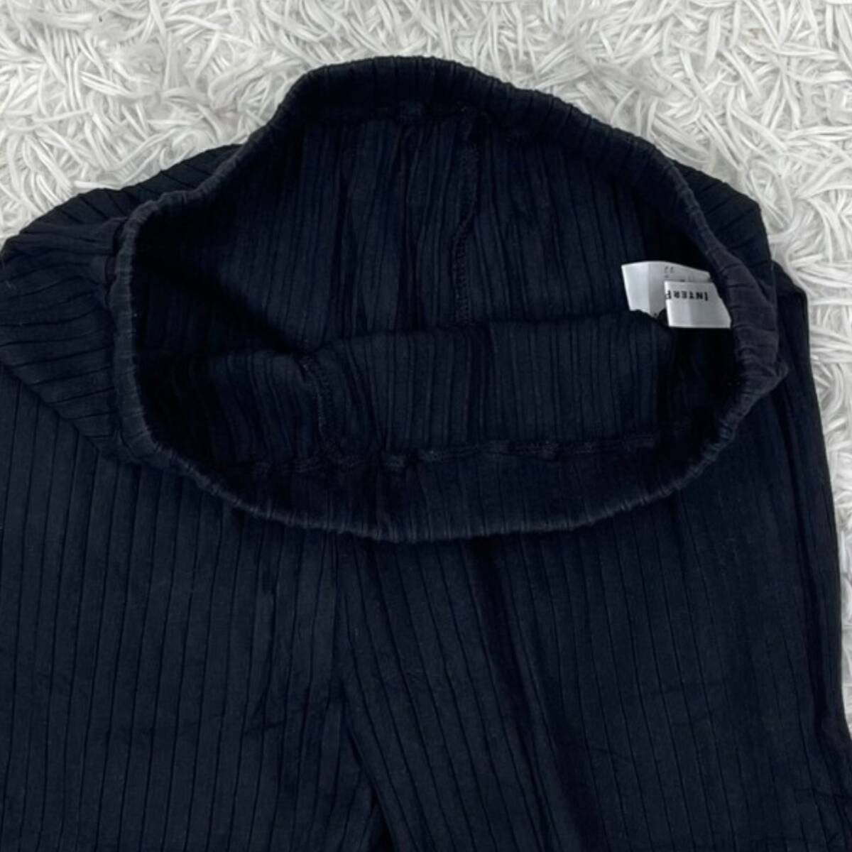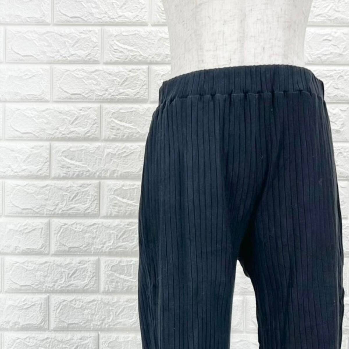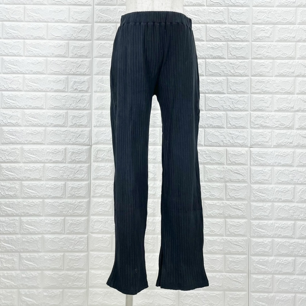 【A3492】INTERPLANET インタープラネット リブストレートパンツ レディース ブラック 美脚 カジュアル ウエストゴム フリーサイズ