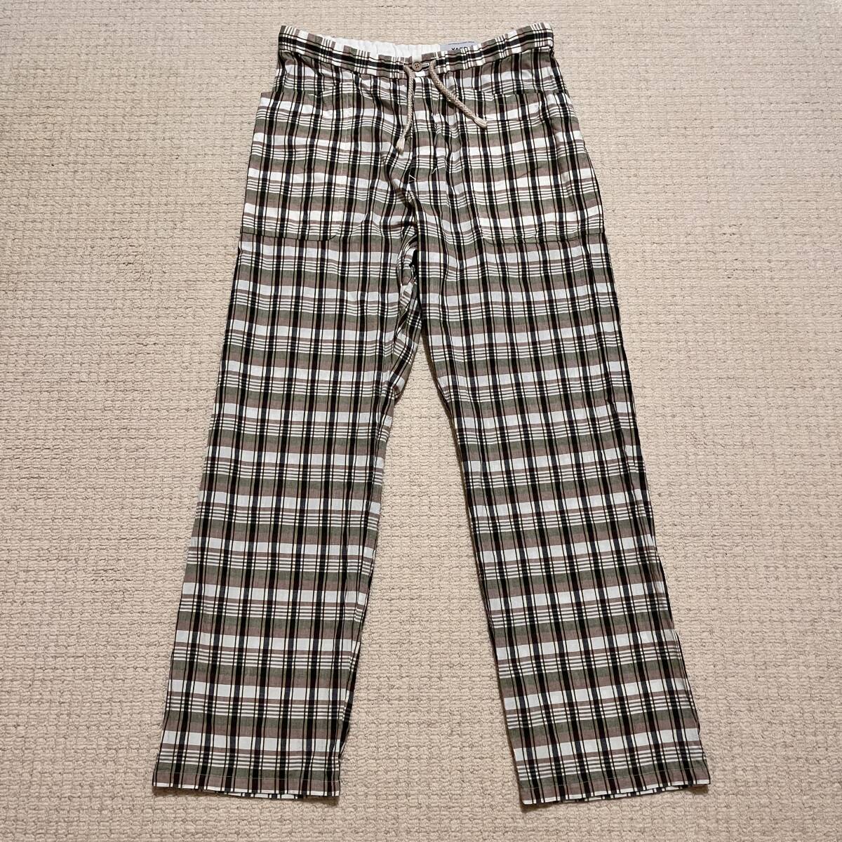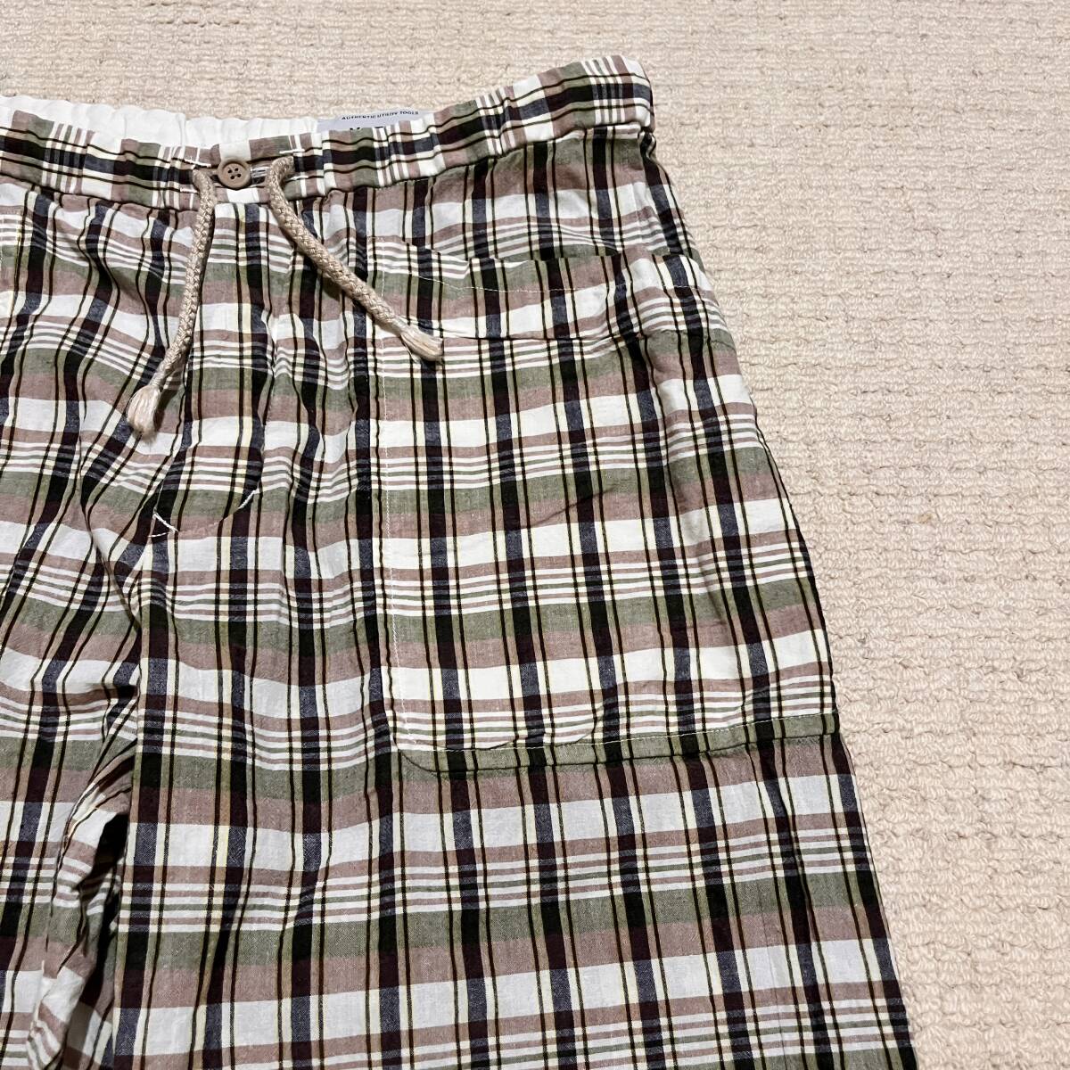 マドラスチェック柄のイージーパンツです。YAECAの商品はこだわり抜かれた日本生産の生地を使用することが多いですが、これはインド生産の生地。厳密に言えば"KHADI(カディ)"という手織りのコットン生地です。
