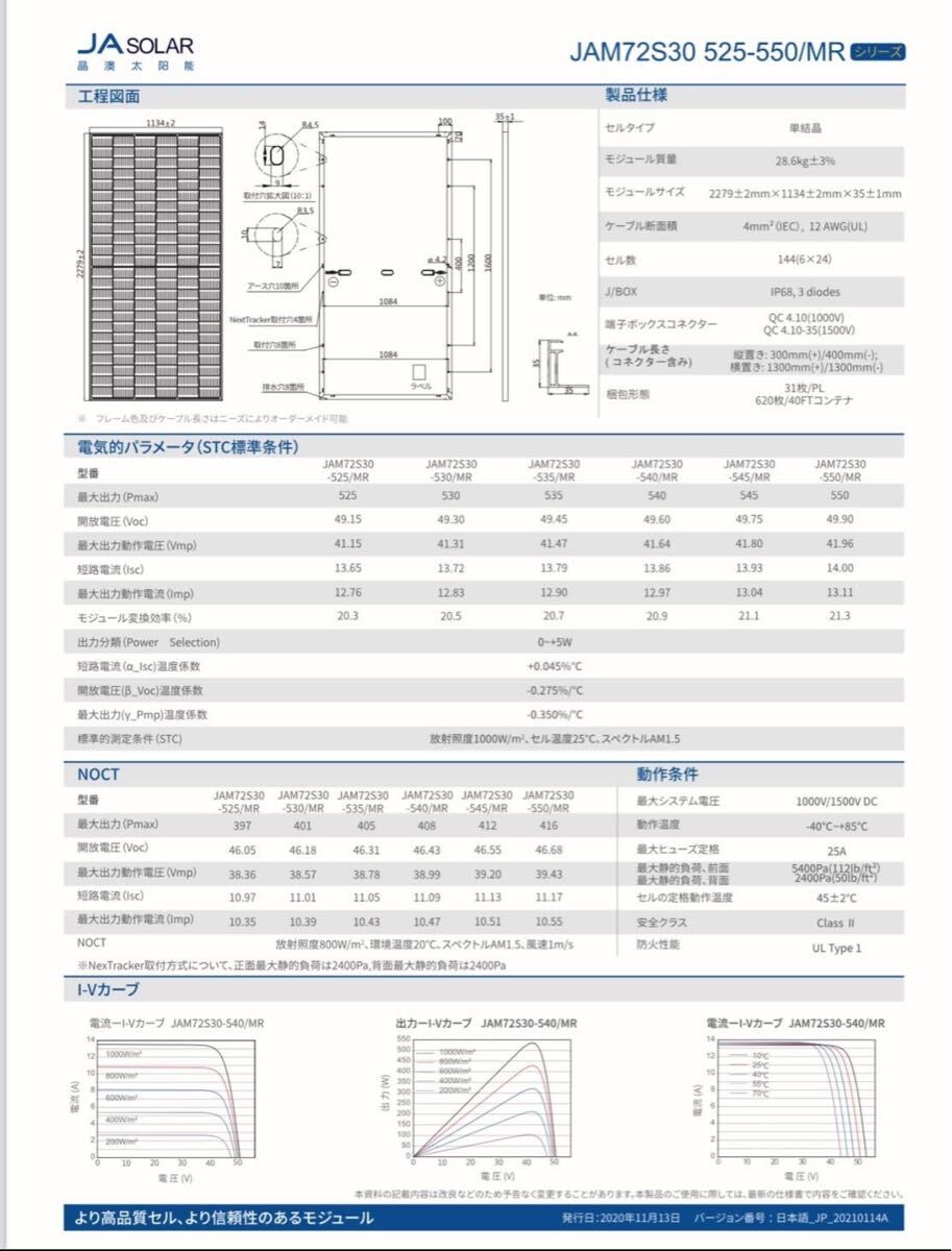 新品・未開封 JAソーラー 540W ソーラーパネル JAM72S30-540/MR 1パレット31枚での出品です。