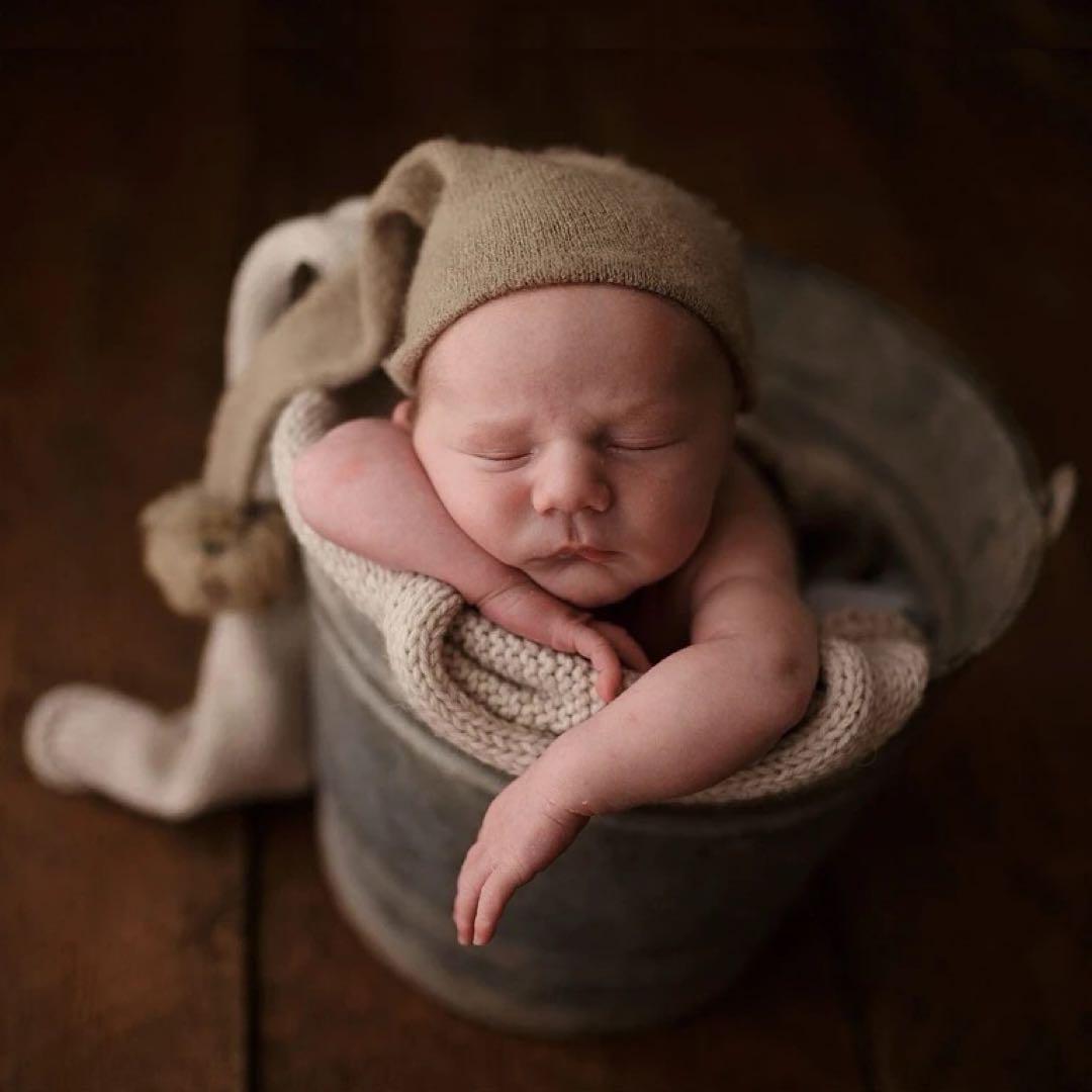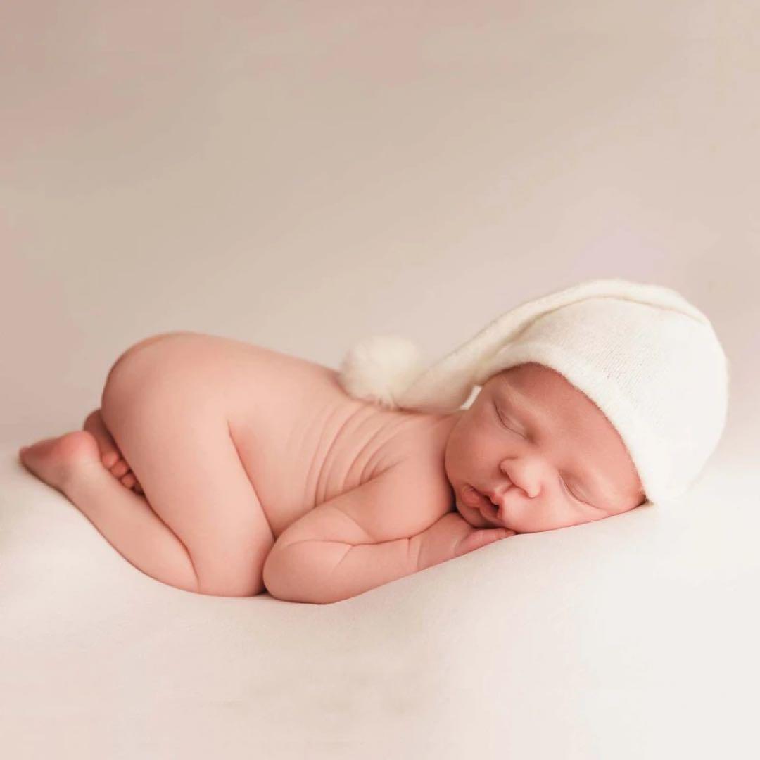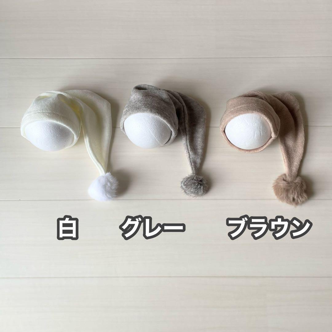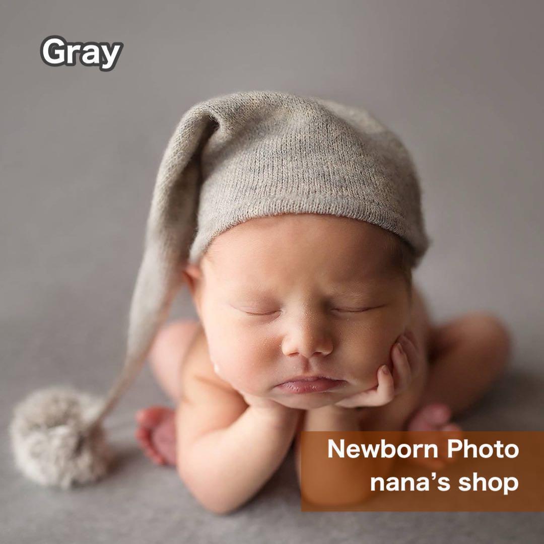 ニューボーンフォトにピッタリな、ぽんぽん付きの三角のとんがり帽子になります