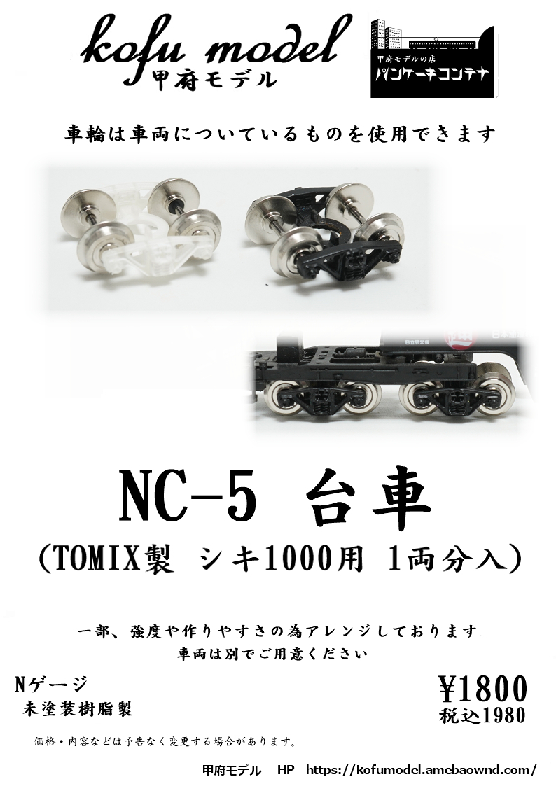 NゲージのNC-5台車(TOMIX シキ1000用 1両分入)の樹脂製未塗装キットです。
