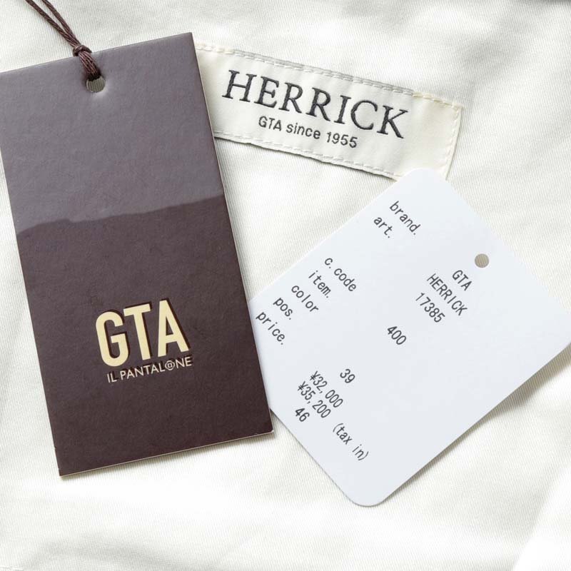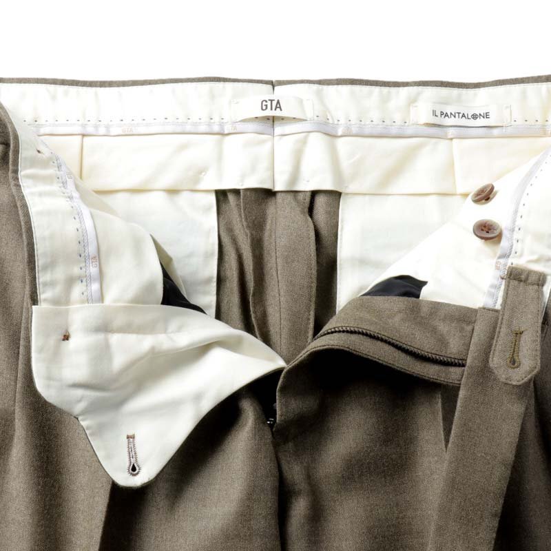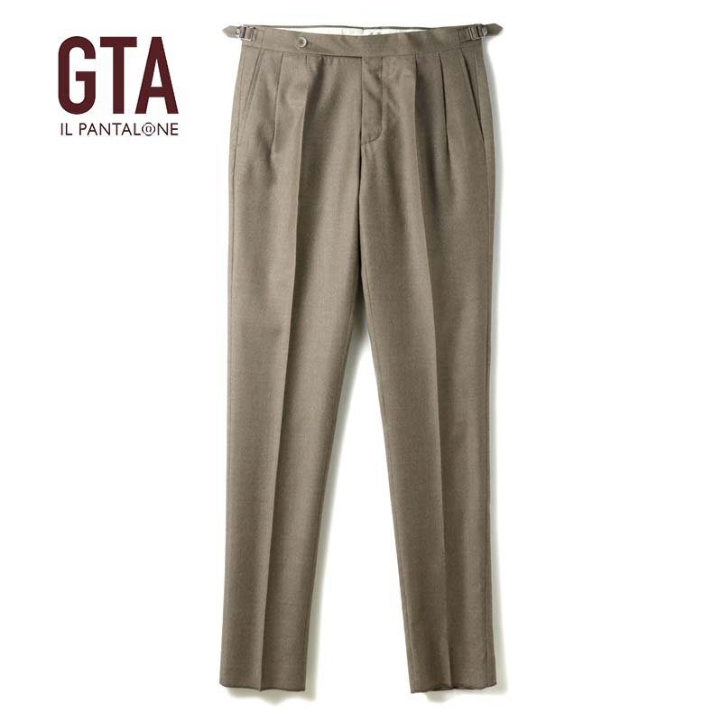 1955年、イタリアのセルバッツァーノでパンツ専業ファクトリーとして創立したモーダ社。 1999年から、ファクトリーオリジナルブランドとして『GTA(ジーティーアー)』をスタートさせます。 美しいシルエットと穿き心地抜群のパターンフィットにより、世界的に確固たる地位を築いたGTAのパンツは、 半世紀にわたる長い歴史に裏打ちされた高い技術力をベースに、今もなおモダンでクリエイティブな イタリアントラウザースを提案しています。