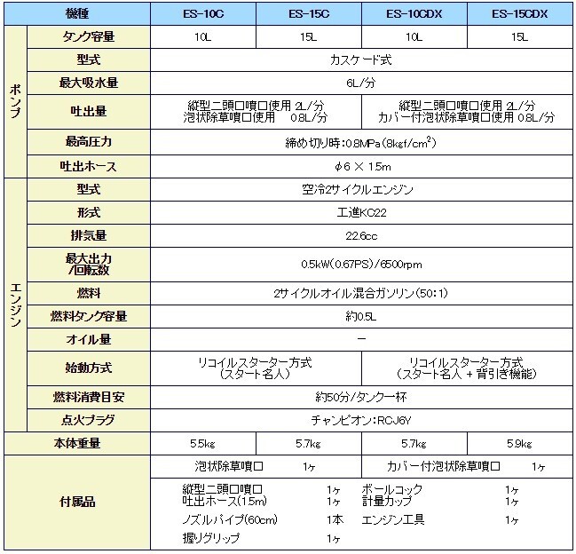 ポ ン プ | タンク容量 | 10L | 15L | 10L | 15L | ||||||||||||||