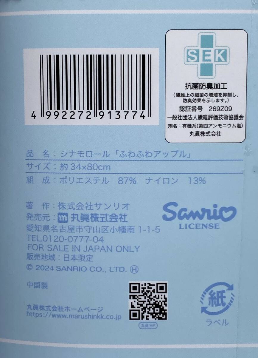 シナモロールのマイクロファイバーフェイスタオルです。