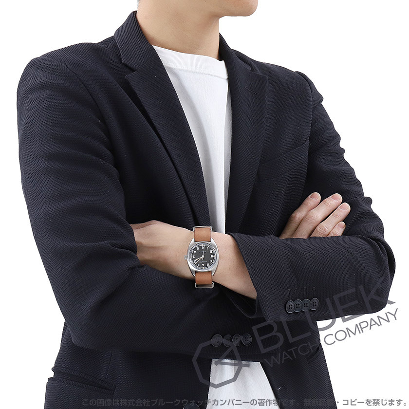 レトロな味わい醸すボックス型に膨らんだ風防とツヤを抑えた厚さ10ミリの33×36ミリ小ぶりな樽形ケース腕にしっくり馴染んで性別問わず楽しめるパイロットパイオニアは、1970年代の英国空軍用に生産されたモデルを復刻したハミルトン人気のミリタリーウォッチ。80時間パワーリザーブのH-50手巻きキャリバーを搭載し、指針と外周に塗布されたベージュの蛍光塗料が暗所でも視認性を発揮します。中でもブラックダイヤルにホワイトのアラビア数字引き立つこのモデルは、ブラウンレザー製のNATOベルトも魅力。重さ55グラムの着け心地も軽快にヴィンテージ感漂うミリタリーデザインが手元をお洒落に彩ります。 |