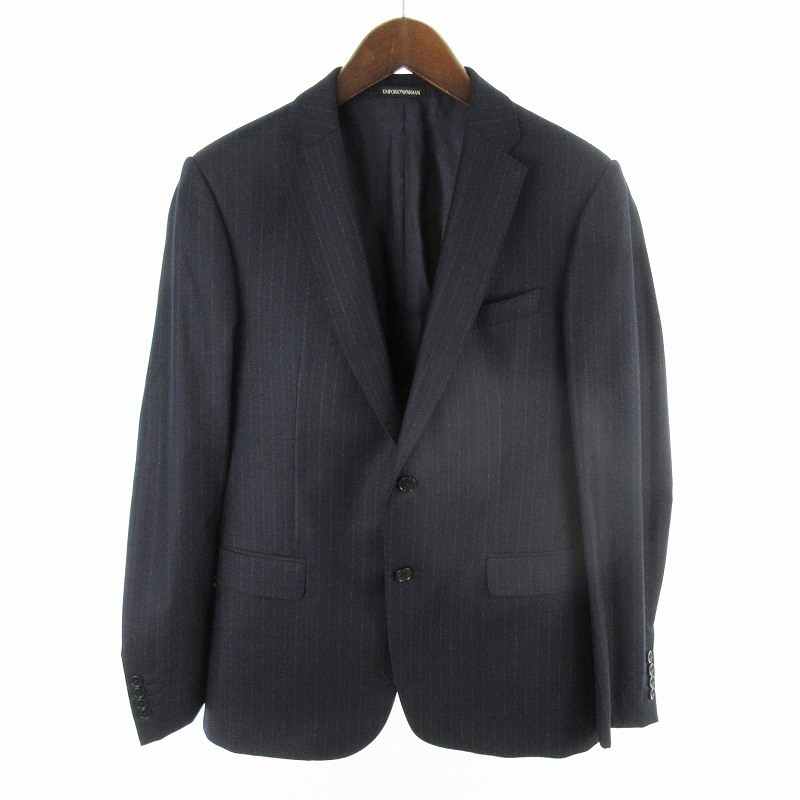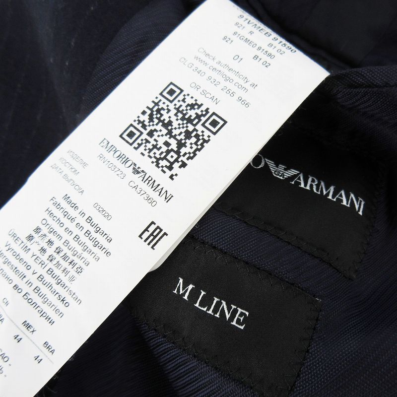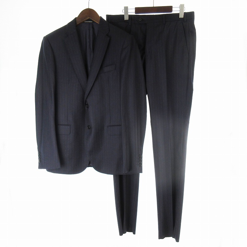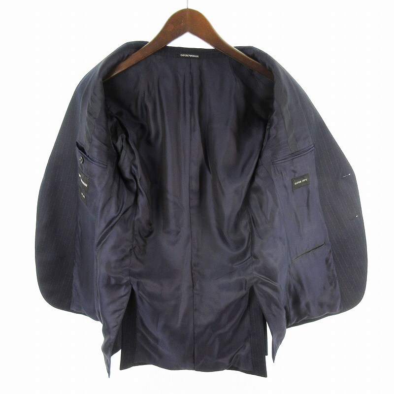 未使用品 エンポリオアルマーニ EMPORIO ARMANI スーツ 上下 セットアップ ジャケット パンツ スラックス ストライプ 紺 ネイビー 2B 総裏 M LINE super 150s 44