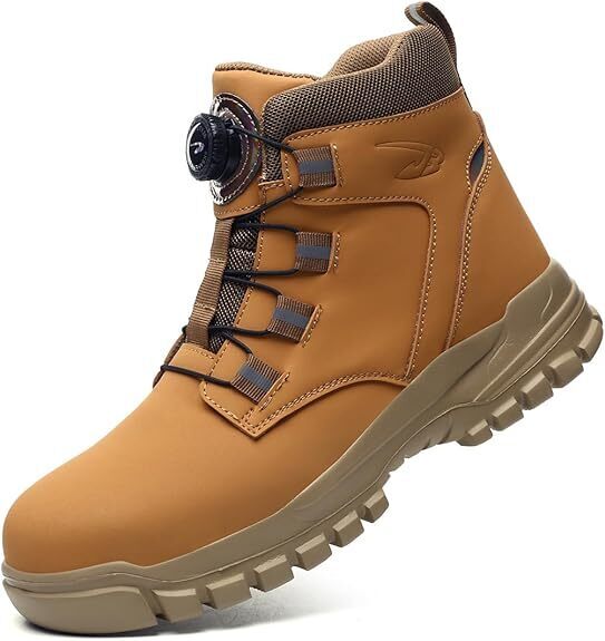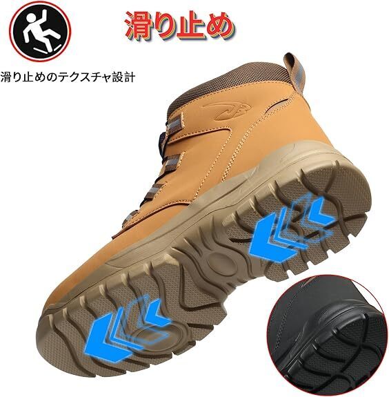【軽量&耐摩耗ソール】安全靴ブーツのインソールは高弾性の綿で設計され、通気性があり、柔らかく、軽量です。靴底は丈夫なゴムとプラスチックを採用し、磨耗に強く、靴底は滑りにくいテクスチャーで設計され、濡れた路面を歩く時の安全性を確保します。