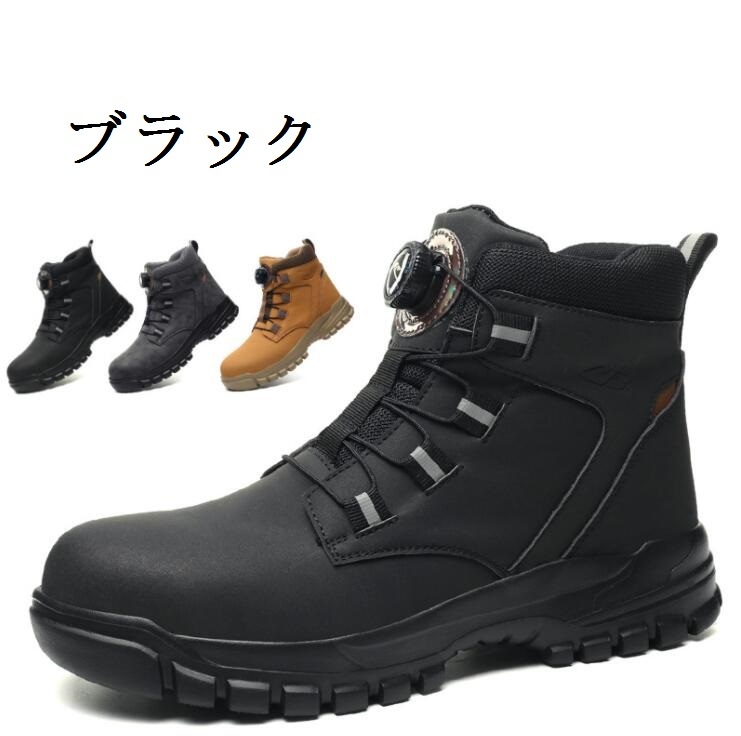 安全靴 防水 メンズ ワークブーツ 作業靴 ハイカット 軽量 ダイヤル 鋼先芯 セーフティシューズ ブラック サイズ:28cm