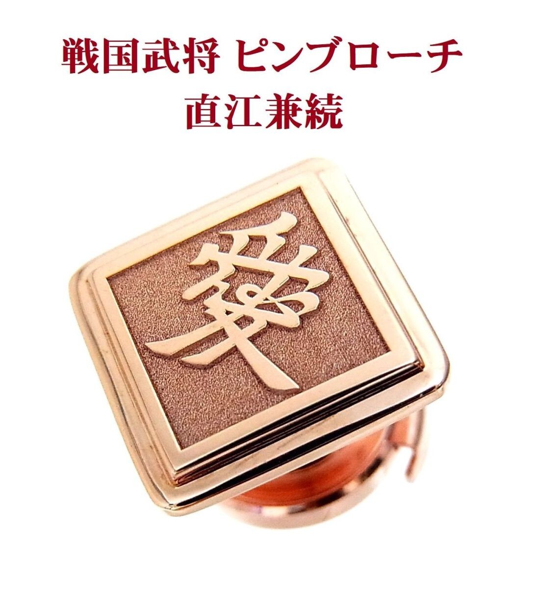 現品限り 戦国武将 家紋 旗印ピンブローチ 直江兼続 愛 18金ピンク製 タイピン ラペルピン 送料込み