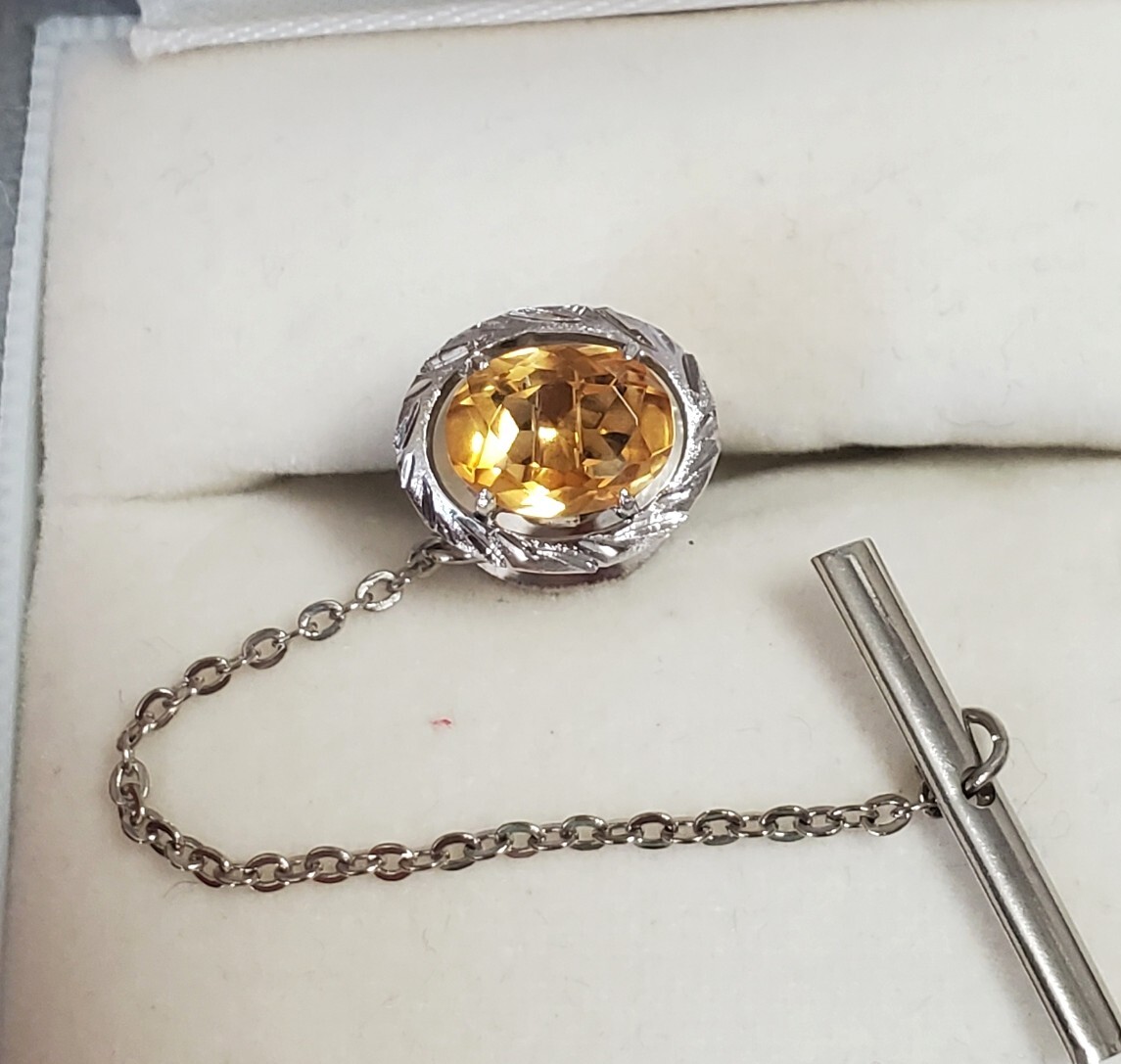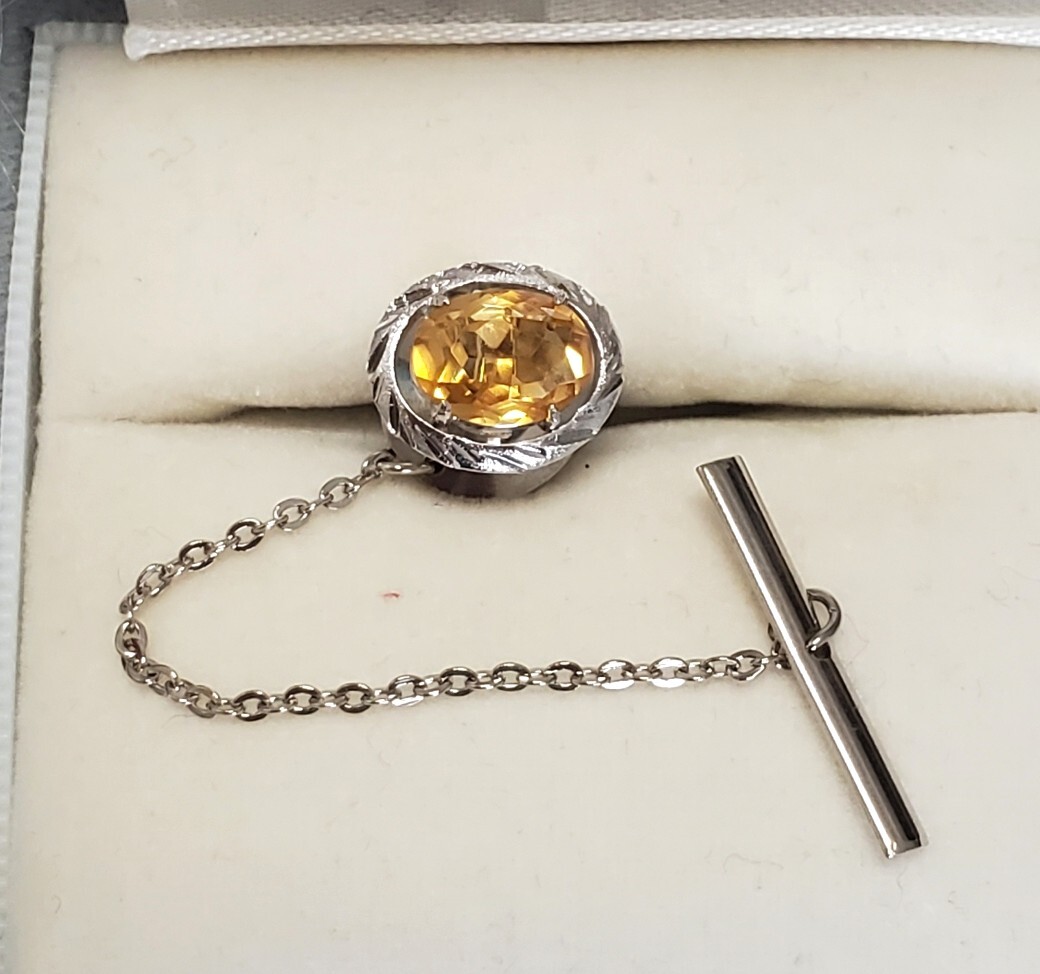 SILVER シルバー シトリン カラーストーン タイピン メンズ アクセサリー 3,3g 美品