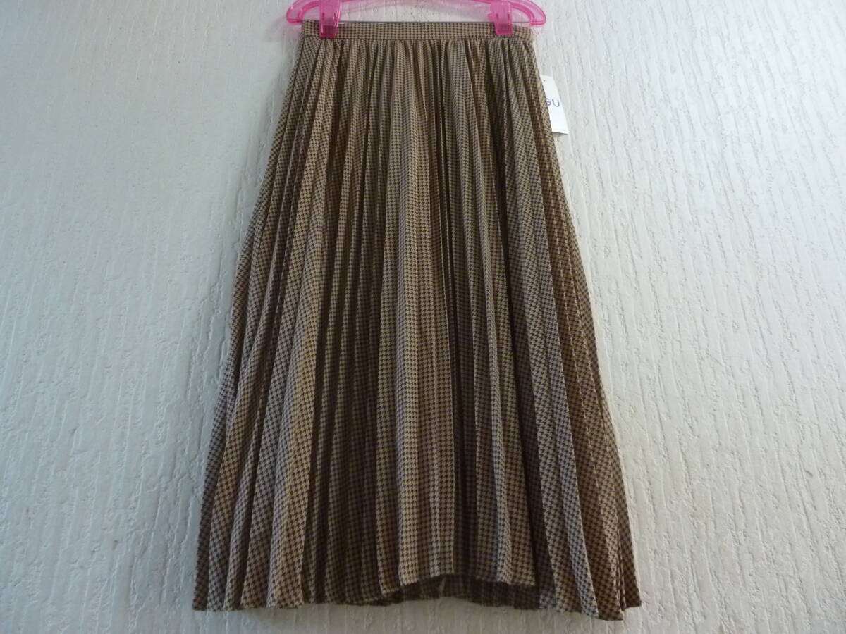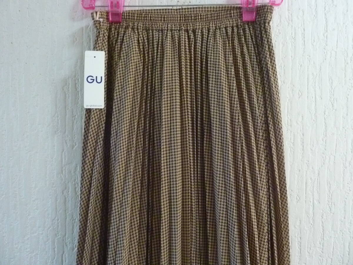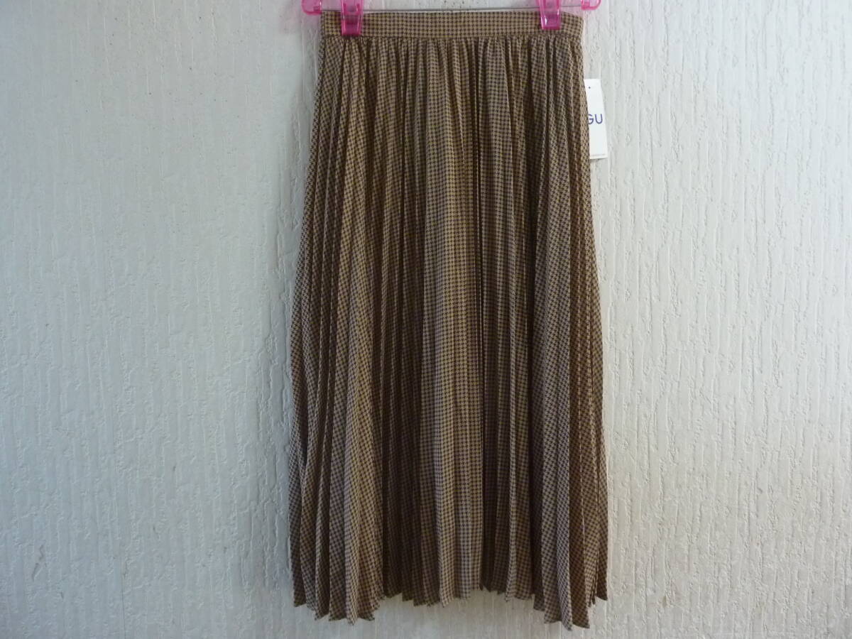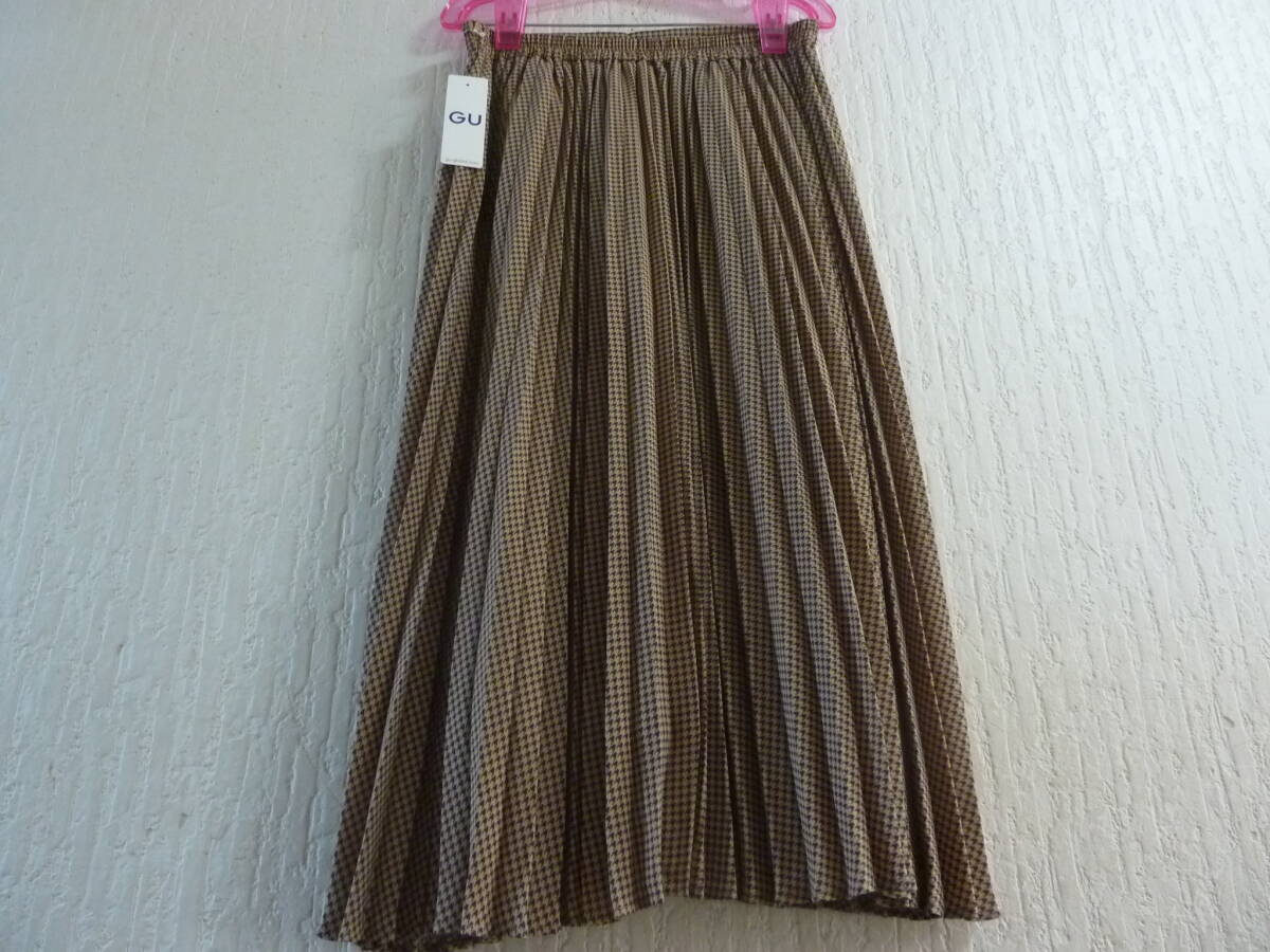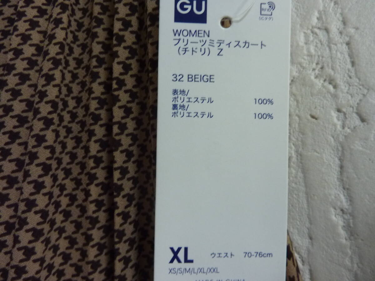 ★GU(ジーユー)★プリーツミディスカ【裏地付き】★千鳥柄★ベージュブラウン系★レディースサイズXL★サラサラ生地★新品未使用タグ付★