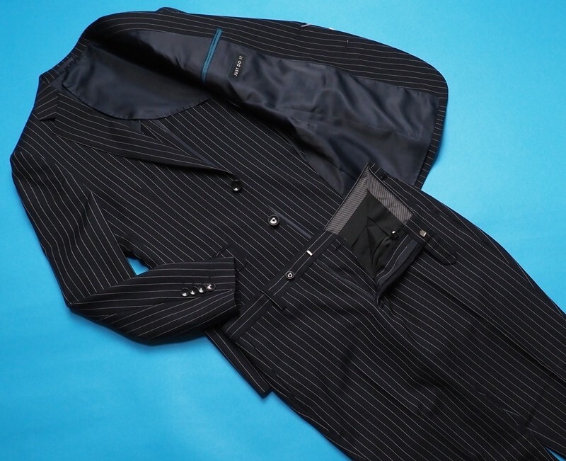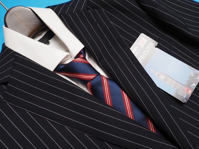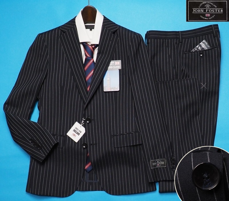 新品8.6万円 大手百貨店扱い 春秋『ジョンフォスター 英国製生地』 ウール100% ポーラー ストライプ スーツA6濃紺(B) 1500091