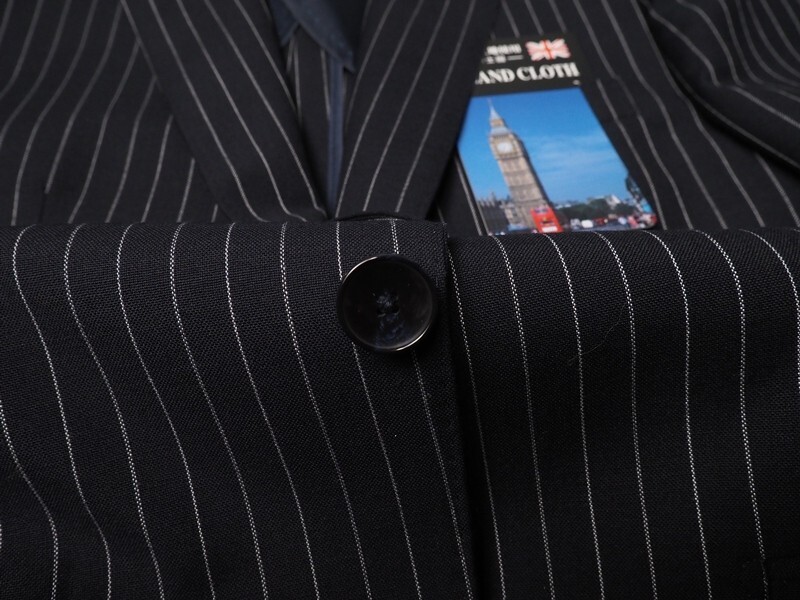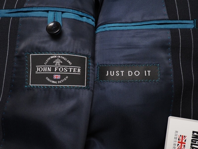 AMFステッチなど、百貨店向けならではの上級仕立てで仕上げられております。ファブリックは英国随一の伝統を誇るジョンフォスター社のウール100%生地を使用。英国生地ならではのトラッドなストライプが綺麗な最高峰の逸品です。