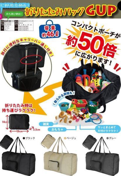 新品●折畳ボストンバッグ46L旅行に便利■ベージュ |