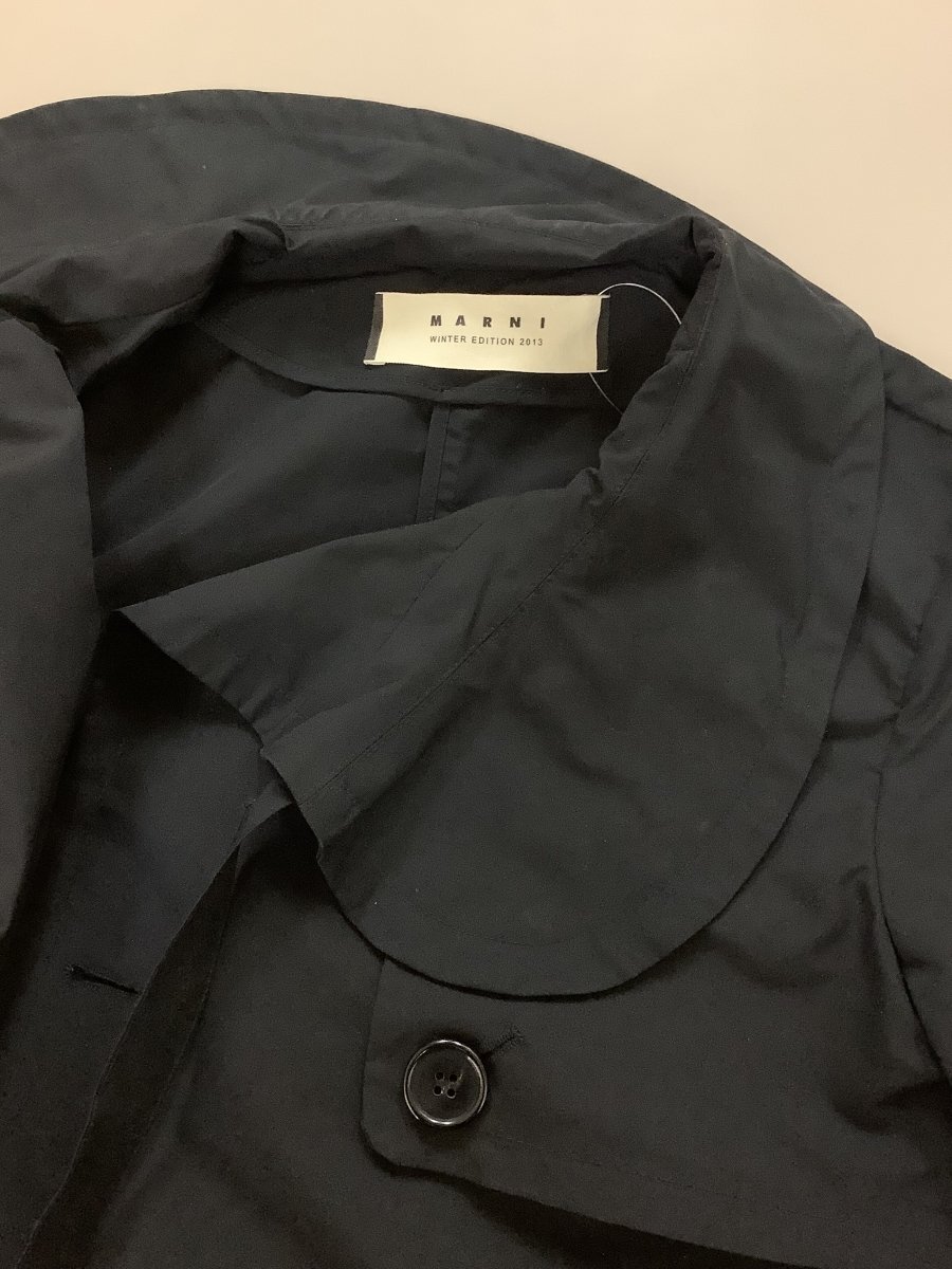 | マルニ (MARNI) 黒トレンチ風コート 【表示サイズ】 40 【平置き実寸】 脇下身幅 47cmほど 着丈 92cmほど 肩幅 39cmほど そで丈 60cmほど 【季節感】春秋向け 【状態その他】 やや傷や汚れあり 首周りや衿などに薄い汚れあり 当店管理番号:10^140204 |
