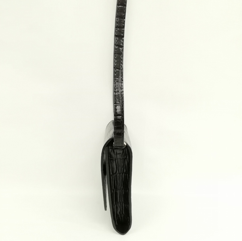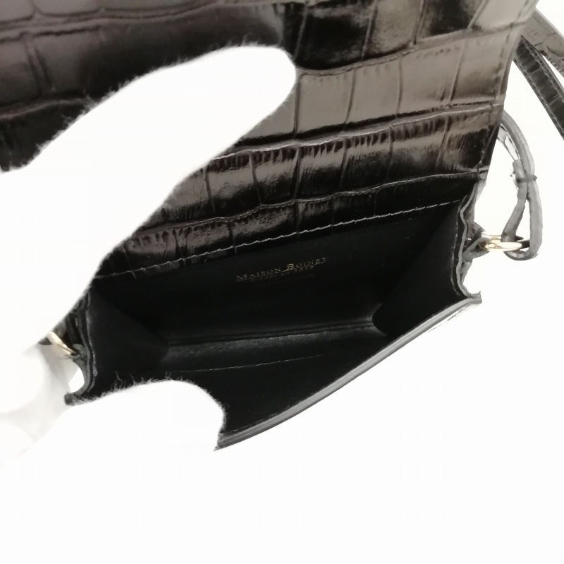 MAISON BOINET メゾンボワネ ミニ ショルダーバッグ クロコ 型押レザー 美品 ブラック レディース
