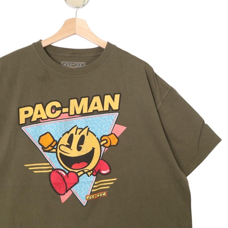 PACMAN パックマン クルーネック 半袖プリントTシャツ メンズUS-2XL オリーブグリーン ナムコ ゲーム hsc-0246n