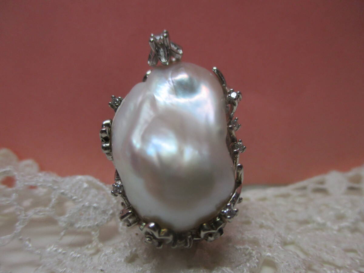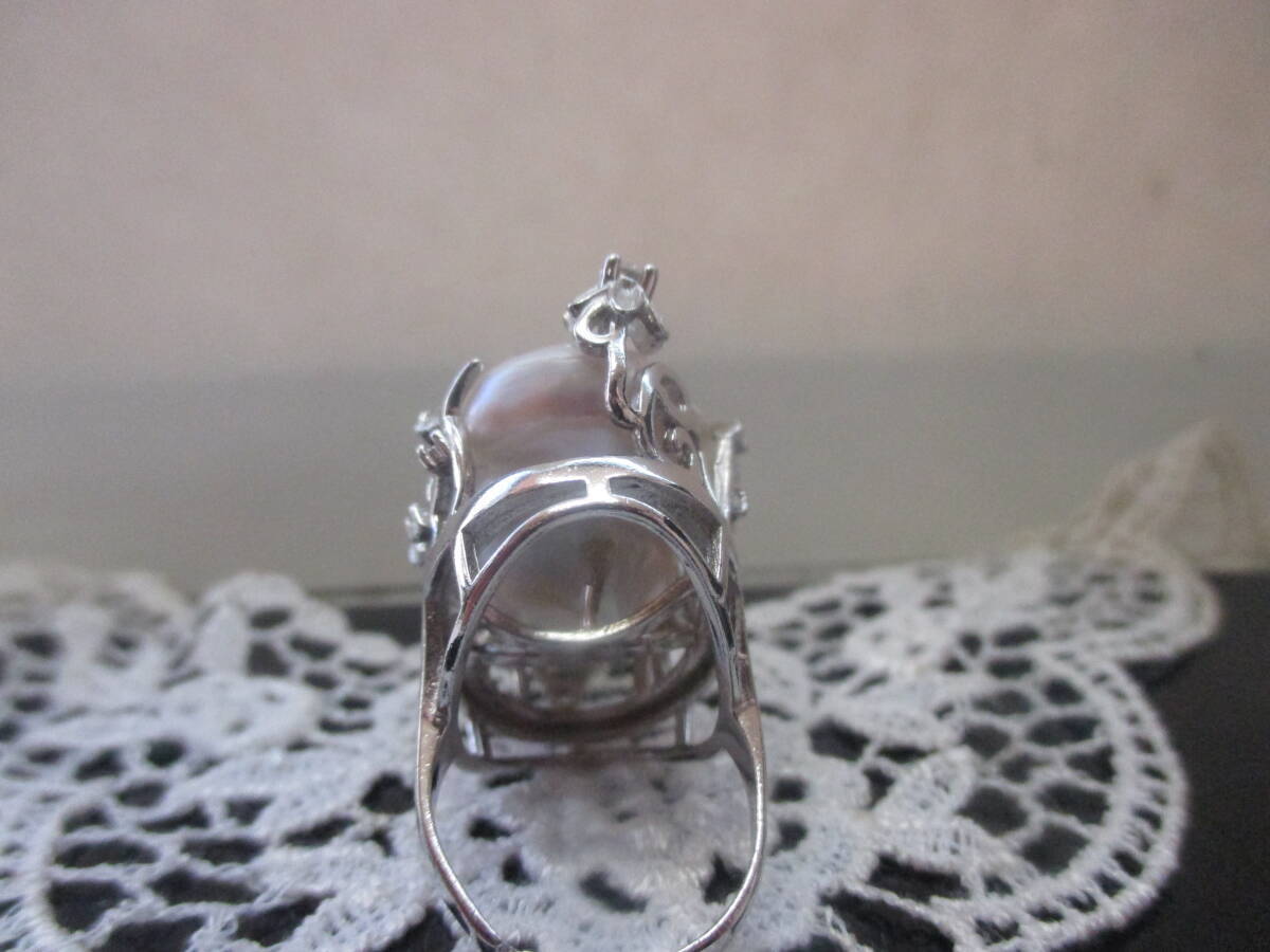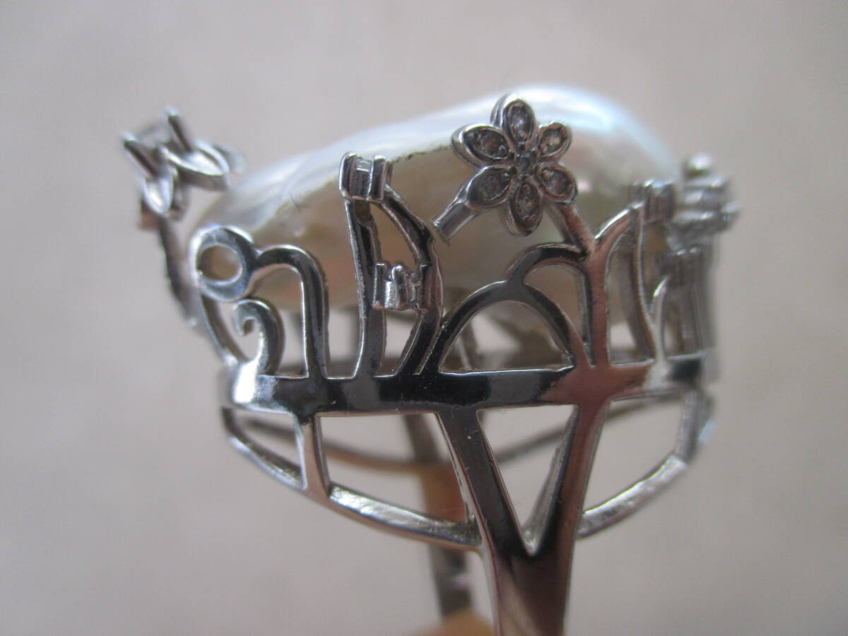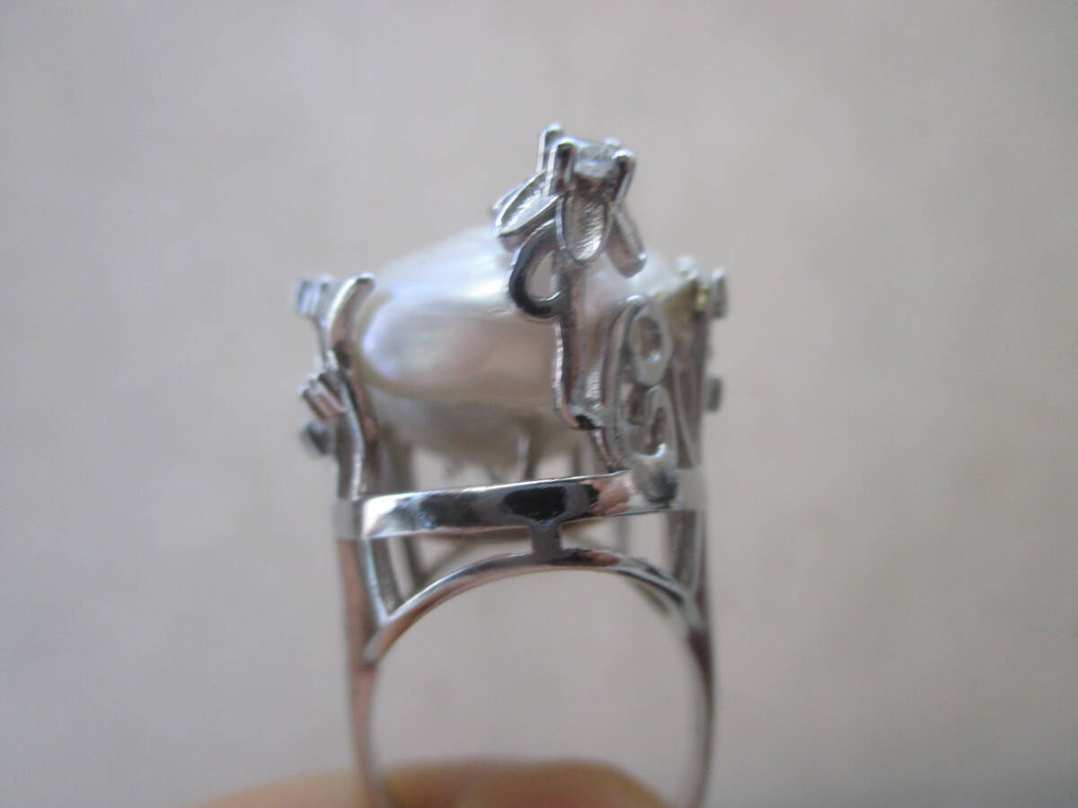 新品★銀925細工!南洋ジャンボバロックホワイト★CZ22個!も^フェミニンなパールリング^調節可能 アガット好きにも
