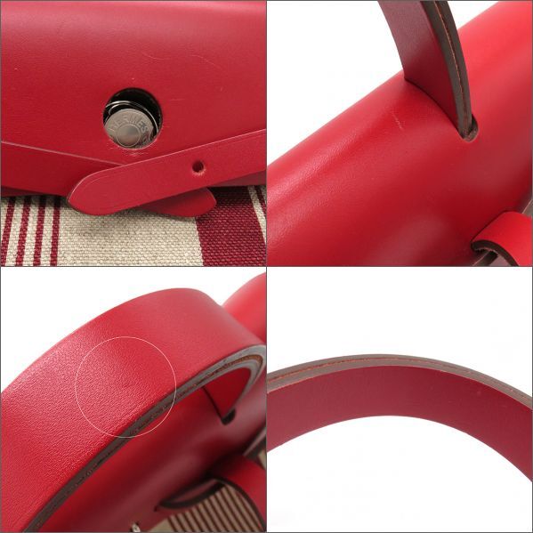 【外側】型崩れ、表面生地に毛羽立ち、表面レザーに擦れや毛羽立ち、ショルダーに擦れや毛羽立ち【内側】フラップ裏や内側、ポーチに毛羽立ち【におい】保管臭【刻印の場所】背面フラップ内側【保護シール箇所】留め具