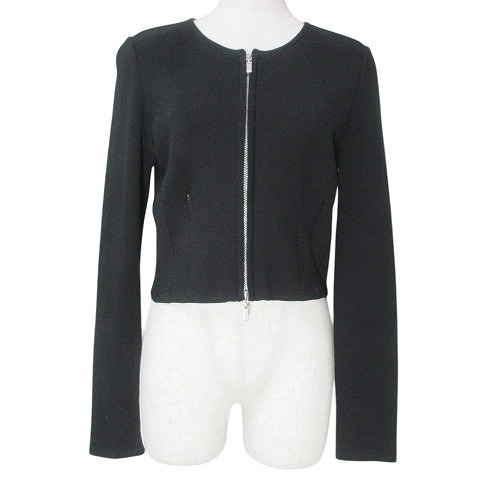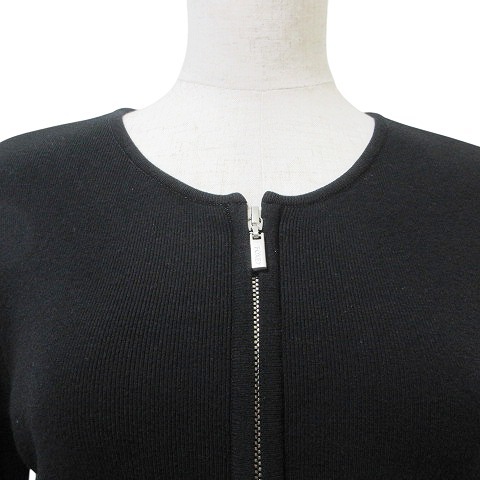 フォクシー FOXEY 18年 カーディガン ニット ダブルジップ 38834 長袖 クルーネック 黒 ブラック 38 S相当 X レディース