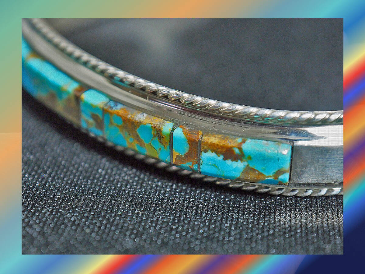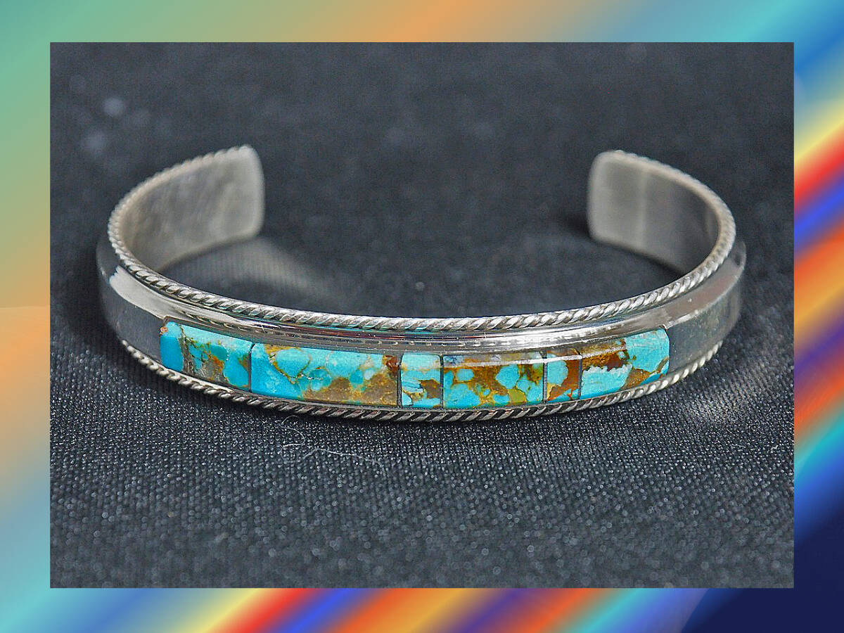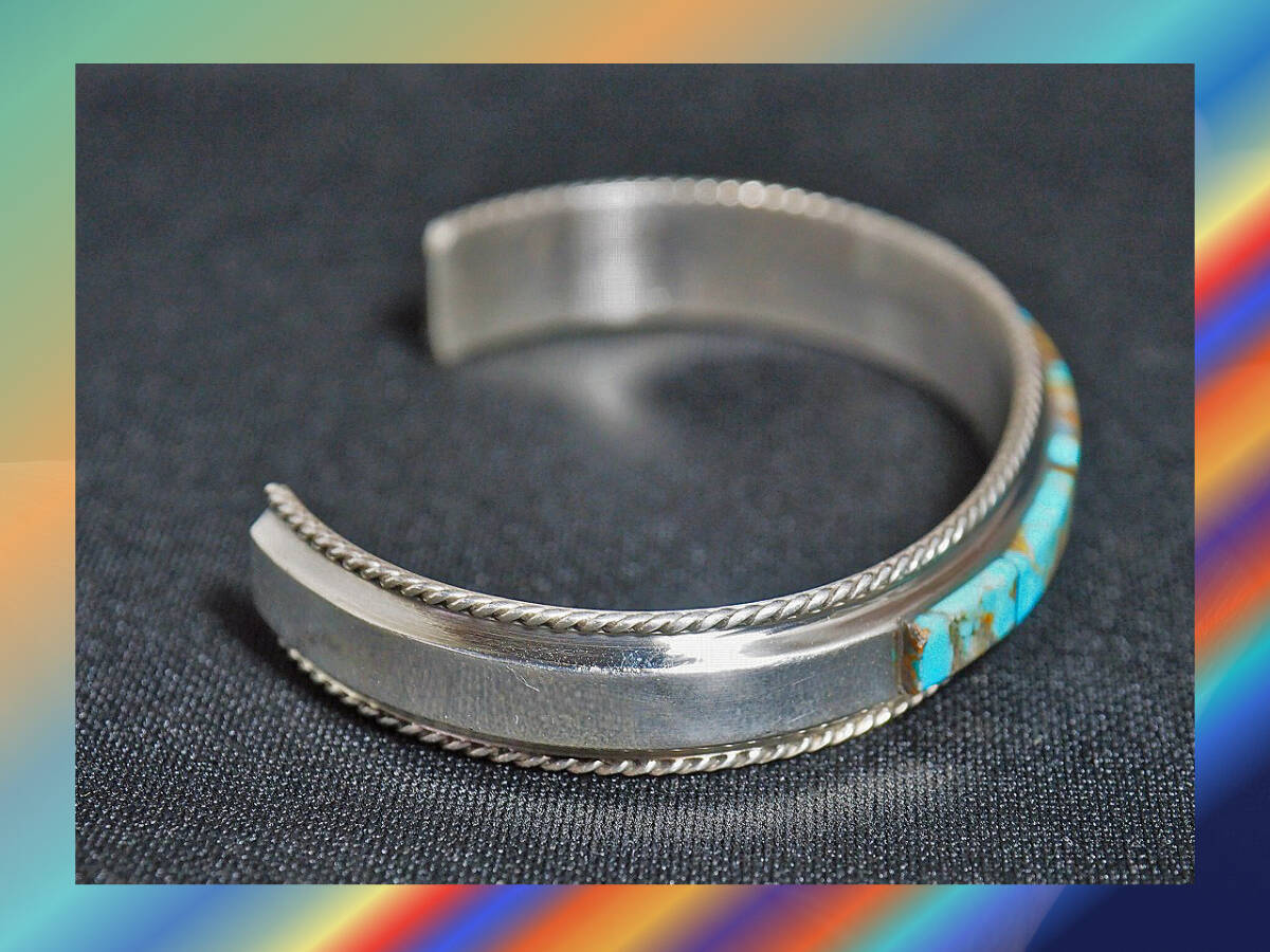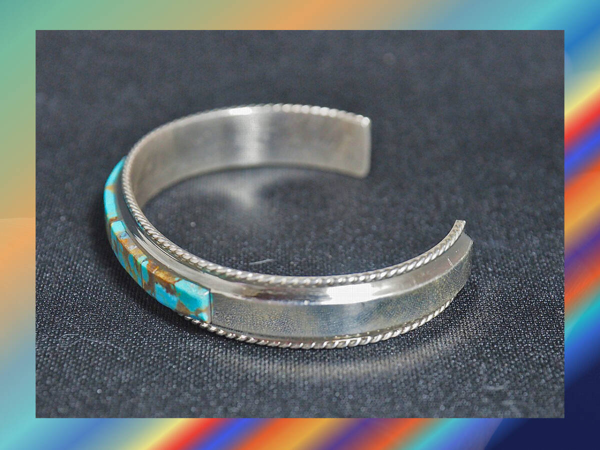 ※インディアンジュエリーの偽物が出回っていますが、インディアンジュエリーと名乗れるのはアメリカの法律では【アメリカインディアン作家による作品】のみで、この作品は本物のインディアンジュエリーです。