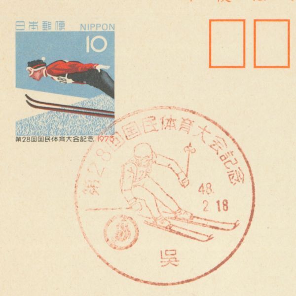 記念印☆28回国体・スキー☆呉・S48.2.18・関連はがき