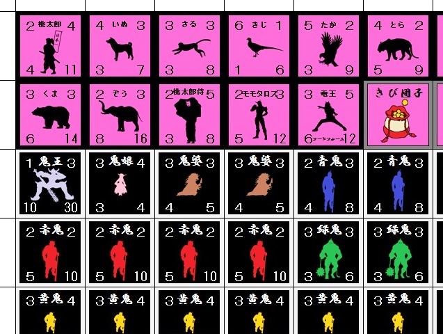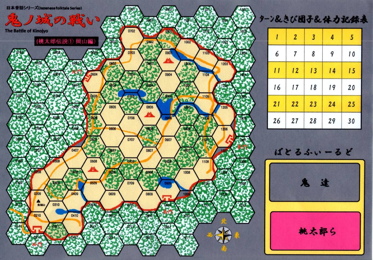 ・猿/犬/雉をつれて、鬼王を最終ターンまでに倒すゲーム。鬼ノ城に奇襲をかけます。