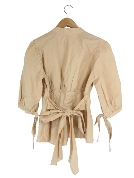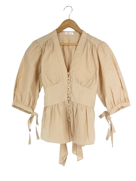 フレイアイディー FRAY I.D ブラウス Vネック リボン 七分袖 無地 サイズ1 ベージュ QQQ レディース