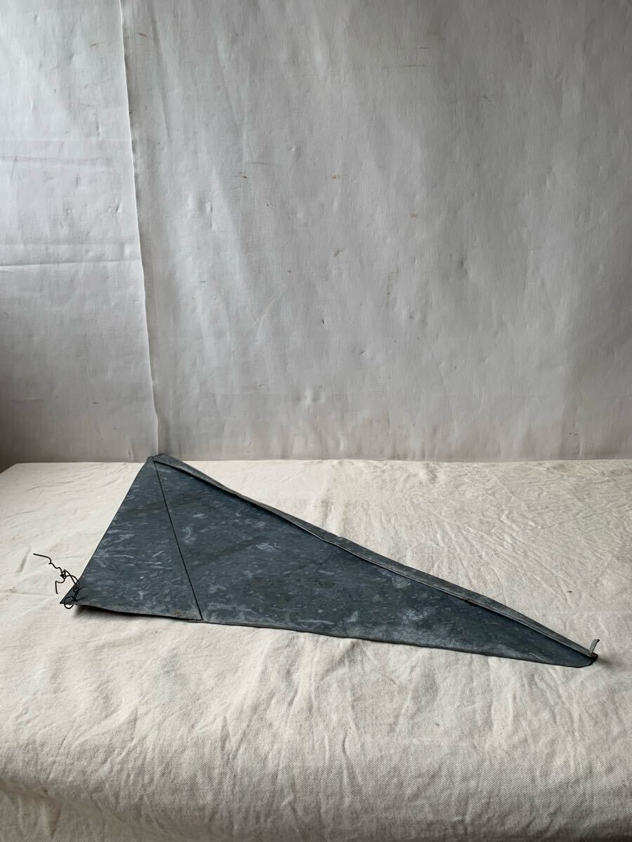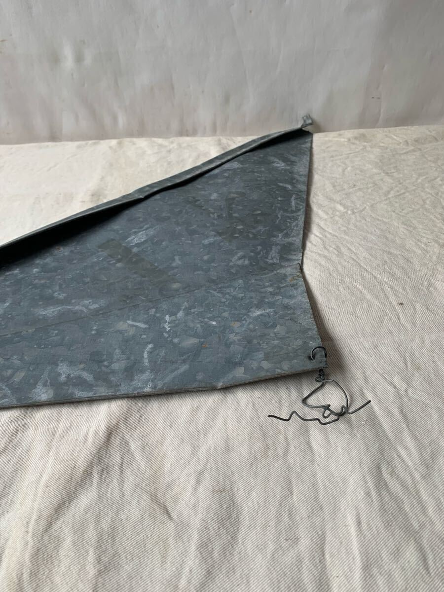 面白い形のブリキ板です。壁などに飾ったり、看板やメニューボード、オブジェとしてお部屋のインテリアやお店のディスプレイ、イベント出店時の什器などに頂くと素敵だと思います。リメイク部材にも良さそうです。インダストリアルな空間演出にいかがでしょう。