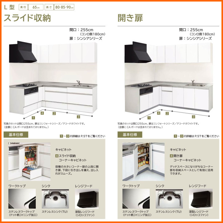 | 商品名 | クリナップ システムキッチン ラクエラ シンシア 2100TU L型 スライド収納プラン コンロ側165cm(食洗器別途)Y |