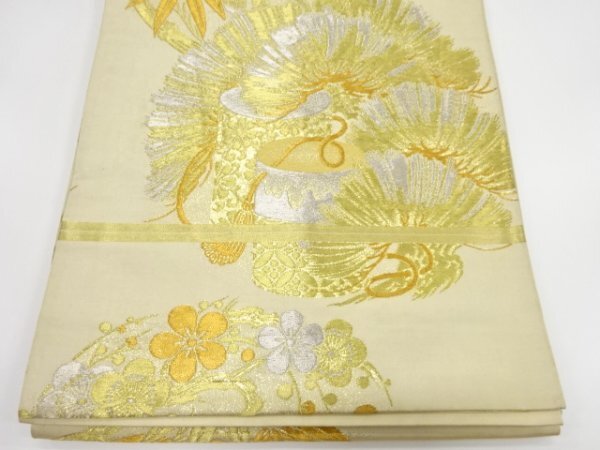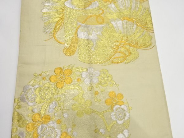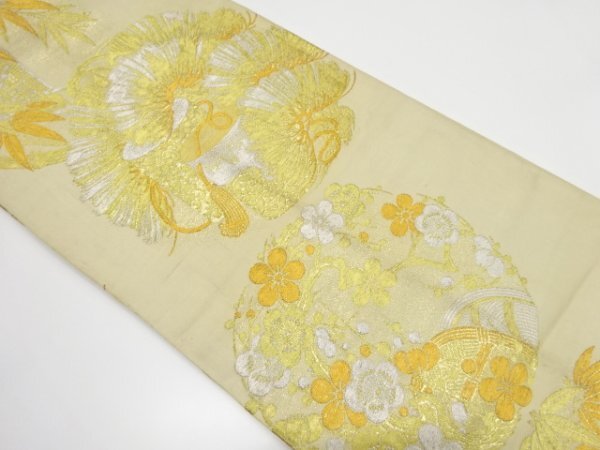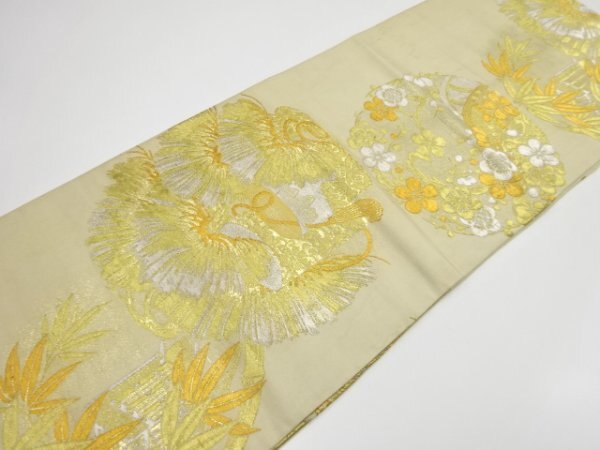 ys7351555; 松竹梅に御所車・貝桶模様織り出し丸帯(材料)【アンティーク】【着】