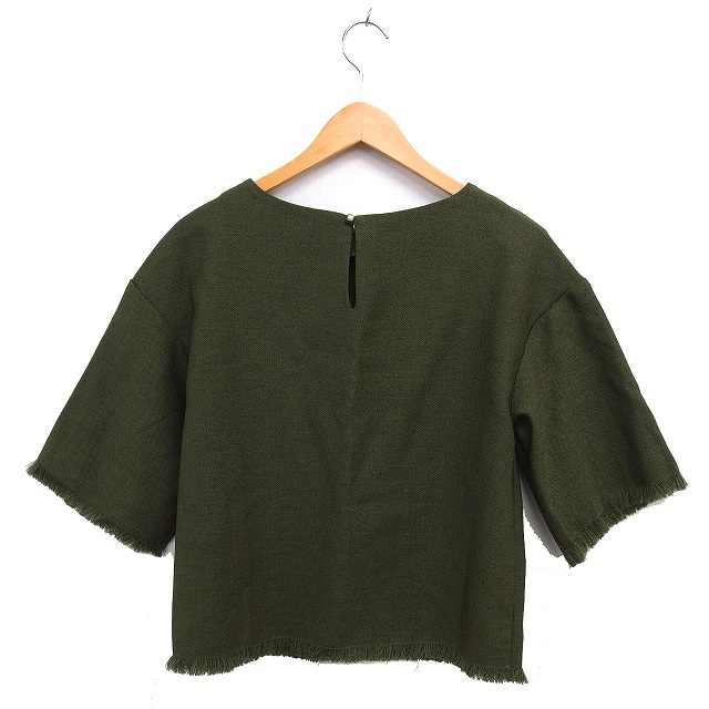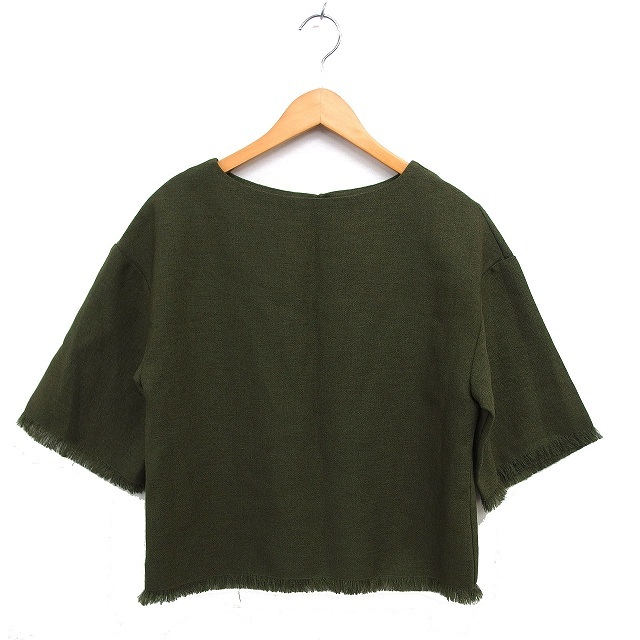 ロペピクニック ROPE Picnic フリンジ ボートネック カットソー ワイド ドロップショルダー 七分袖 38 カーキ /NT16 レディース