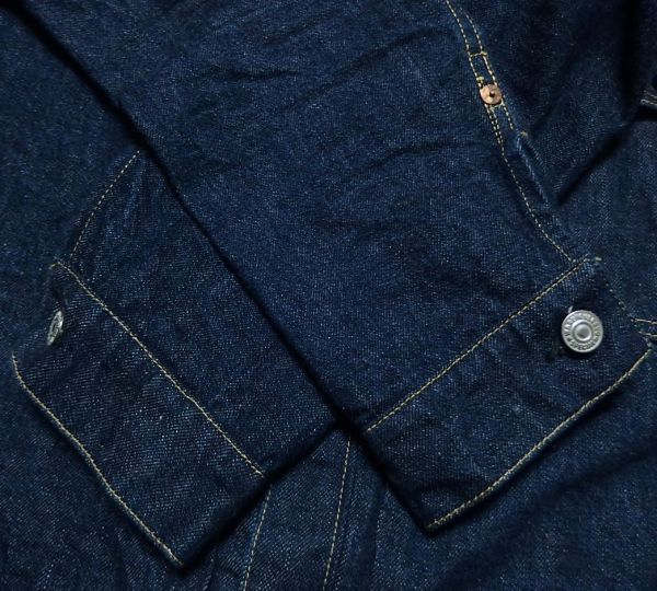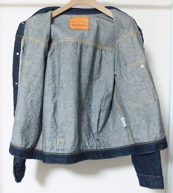 | <商品名> WAREHOUSE ウエアハウス DEAD STOCK BLUE デッドストックブルー Lot 2000XX 1946MODEL デニム ジャケット Gジャン 38 <サイズ> 38 <詳しい寸法> 肩幅46身幅53着丈59袖丈58(単位:㎝) ぐらいです。 <商品状態> 多少の使用感、素材特有の着用に伴う細かなスレやアタリ、色あせはございますが良好です。 <商品説明> Lot 2000XX 1946MODEL