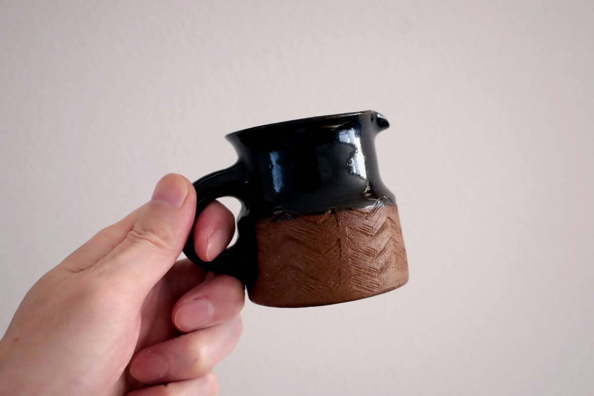 | 商品説明 | 品名:Creamer クリーマー デザイン:Signe Persson-Melin シグネ・ペーション・メリン サイズ:Φ6.5cm(底部)H7.0cm コンディション:外側内側共に、擦れはあまり見られずとても綺麗です。全体としましては、とても素晴らしいコンディションです。 Signe Persson-Melinデザインのクリーマー。上部に黒釉がかけてあり、下部の素焼き部分には刻み又は押し紋様が施されています。希少な作品です。*底部に魚とSP-Mの刻印が入っています(画像5)。 |