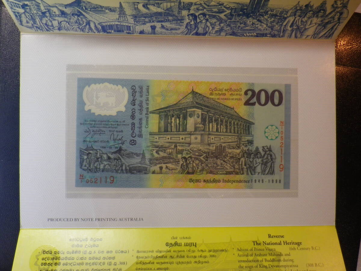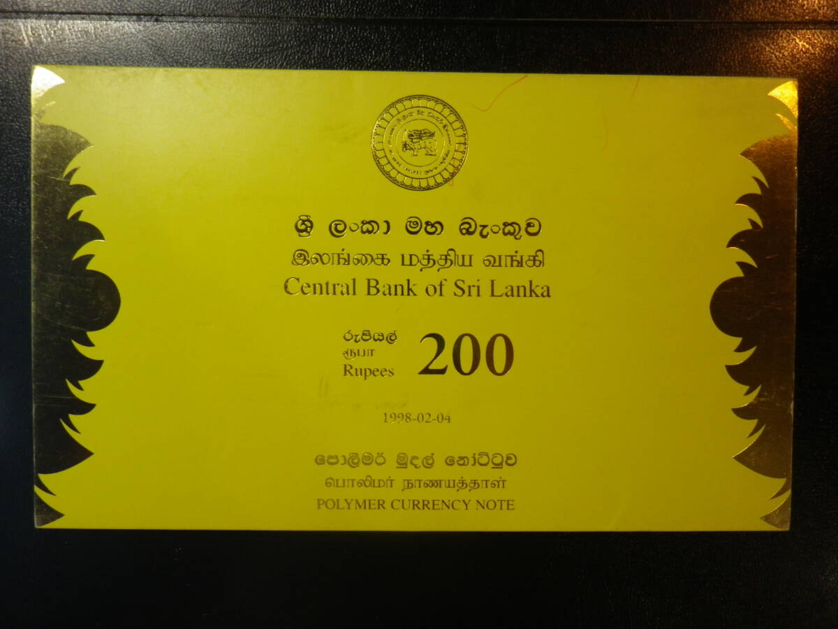 スリランカ 記念ポリマー 1998年 200Rupees 未使用 & ホルダー