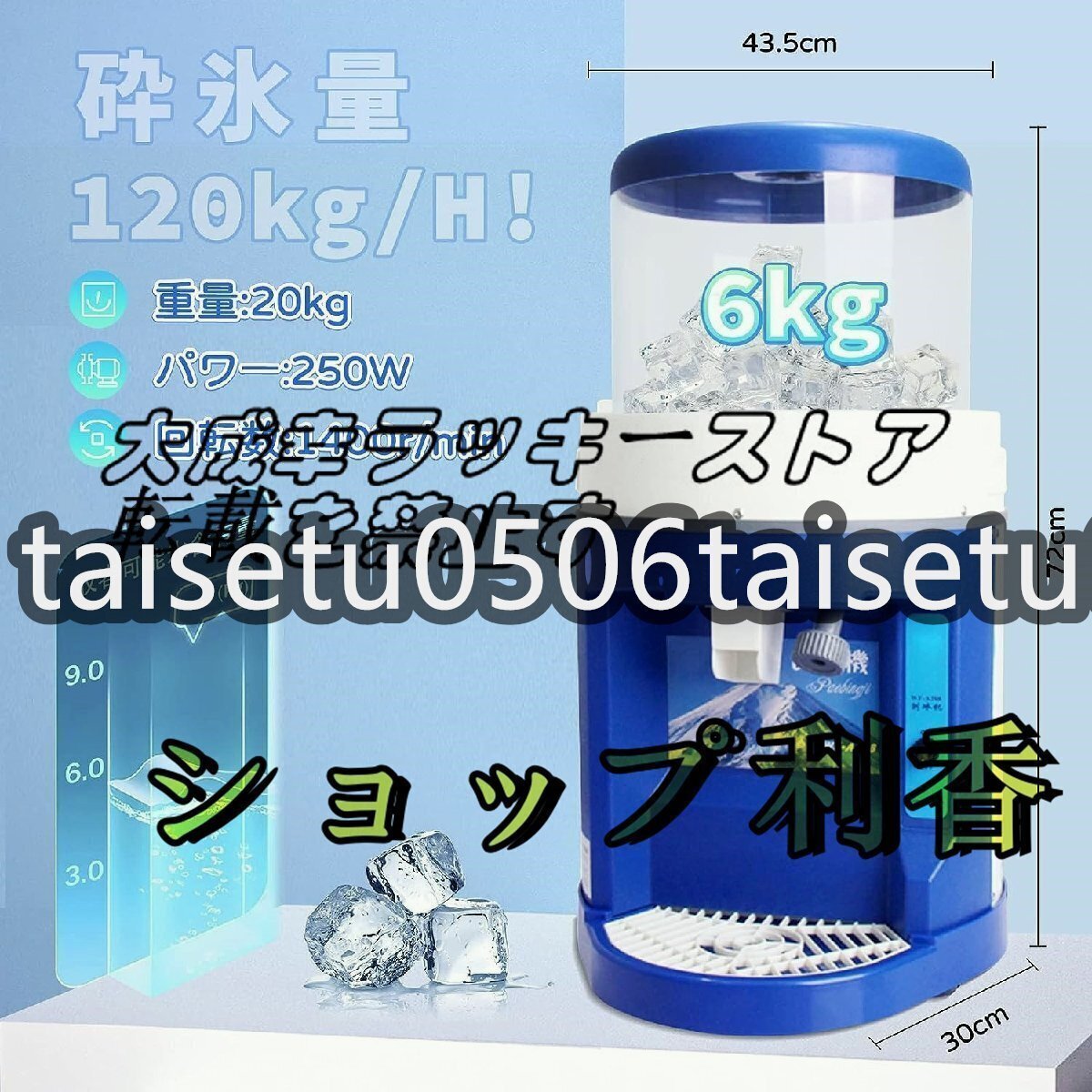 店長特選 業務用 かき氷機 電動 250Wハイパワー 79dB低騒音 1400r/min回転数 工事不要 120kg/h砕氷量 6kg大容量 厚さを調整可能 F1362