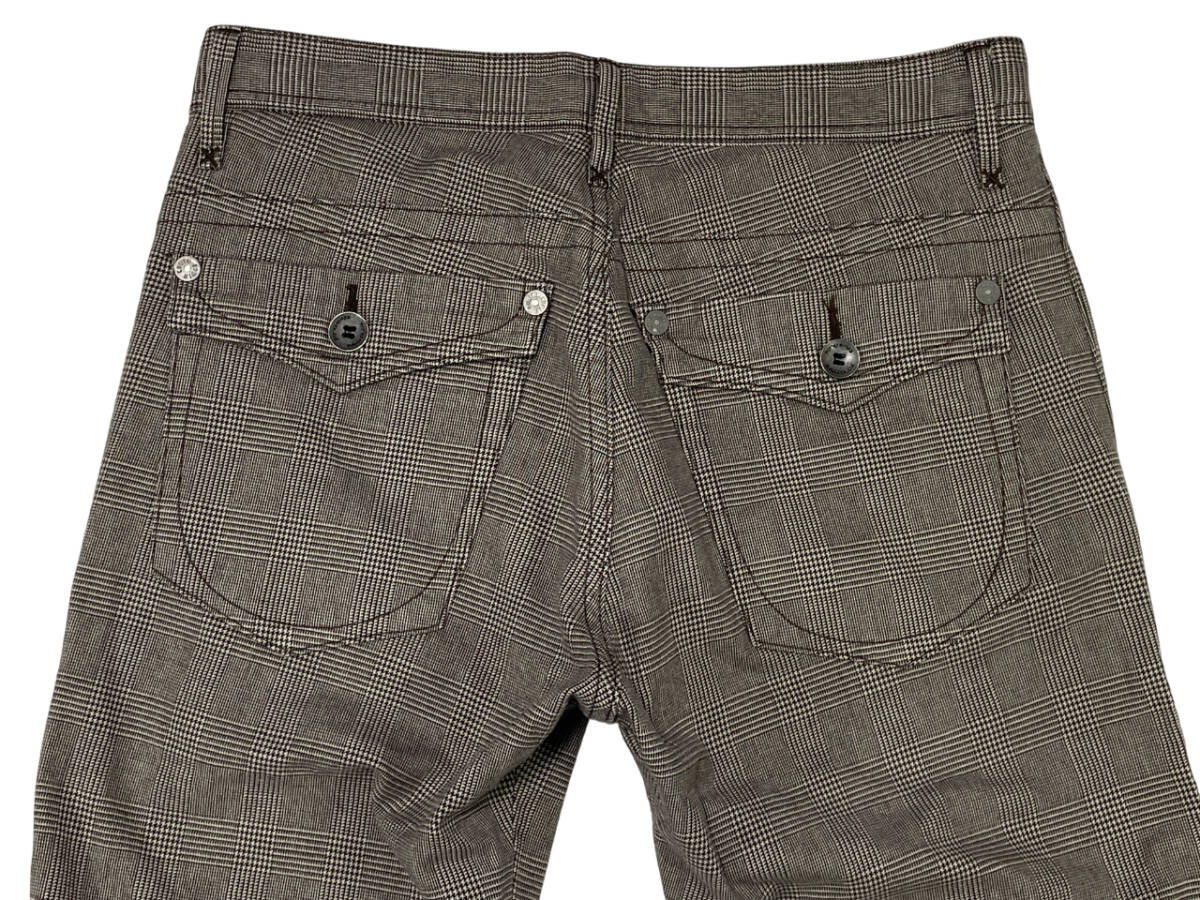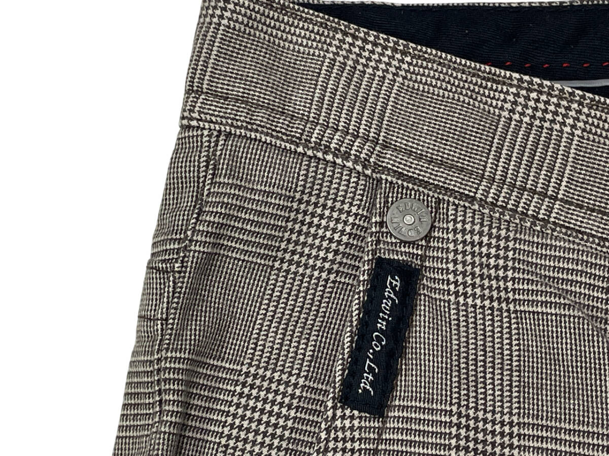 ブランド:エドウィン 型 番 :K5531 カラー :千鳥格子 状 態 :USED EDWIN エドウィン 503 KHAKI グレンチェック ブーツカット コットンパンツ です。 ブーツカットシルエットのストレッチが効いた履きやすいパンツです。ダメージ無くキレイな状態です。サイズの合う方お勧めですよ。 ■サイズ:製品表記 siz.S ■サイズ:実寸(平置き) ウエスト 39.0cm (×2=約78cm) W31相当 股下 73.5cm 股上 24.0cm ワタリ 28.0cm すそ幅 205cm | ||